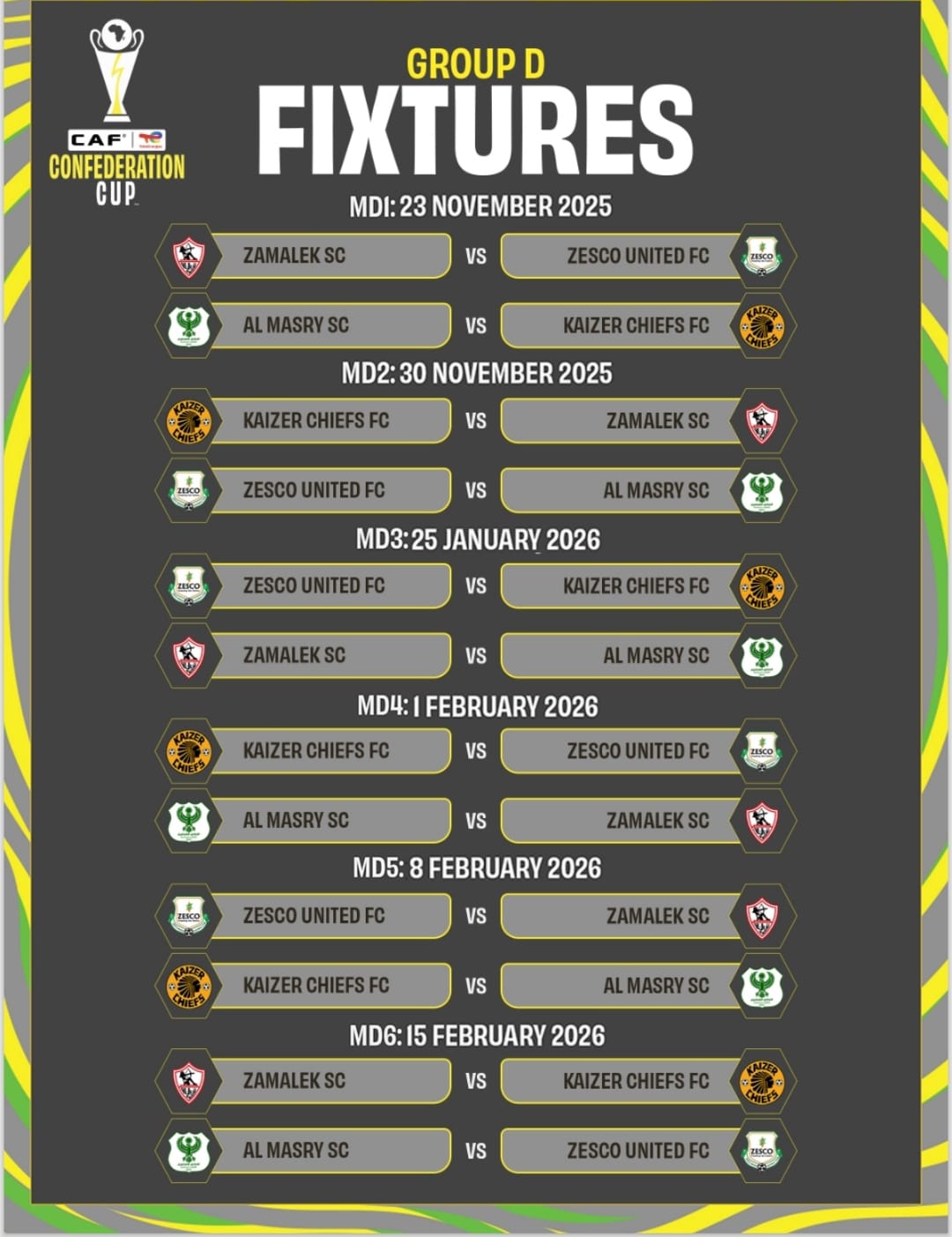 المجموعة الرابعة: الزمالك – المصري – كايزر تشيفز – زيسكو يونايتد.