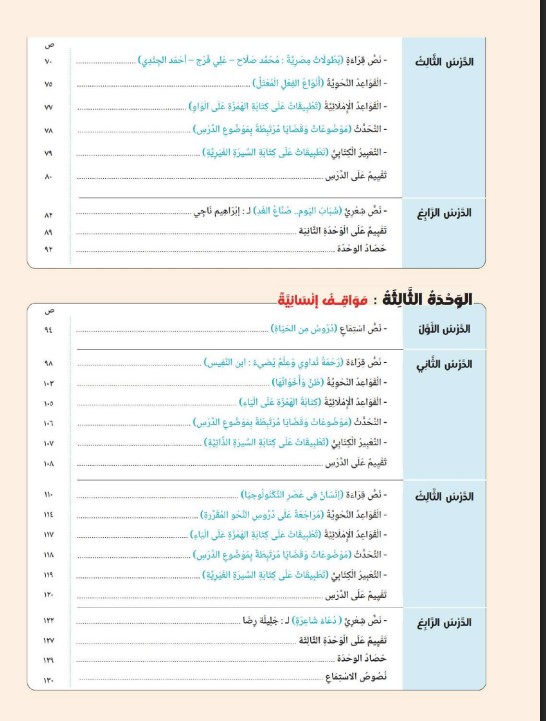 يتضمن منهج اللغة العربية للصف الأول الإعدادي 3 وحدات رئيسية، تهدف إلى تنمية مهارات الطالب اللغوية والثقافية، وتشمل ما يلي: