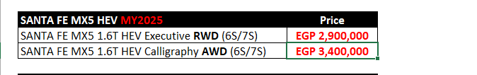 | Executive (دفع خلفي) | 2 مليون و900 ألف جنيه |