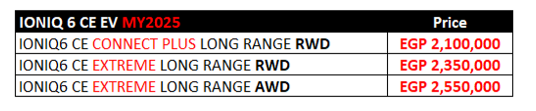 كشفت شركة جي بي أوتو وكيل علامة هيونداي في مصر، تخفيض أسعار سيارة هيونداي أيونيك 6 الكهربائية موديل 2025 بقيمة 600 ألف جنيه على جميع الفئات.