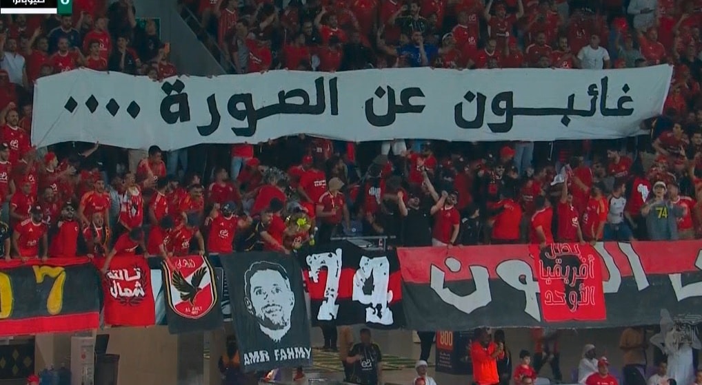 لافتة "غائبون عن الصورة" التي رفعها جمهور الأهلي خلال مواجهته سيراميكا كليوباترا في السوبر المصري
