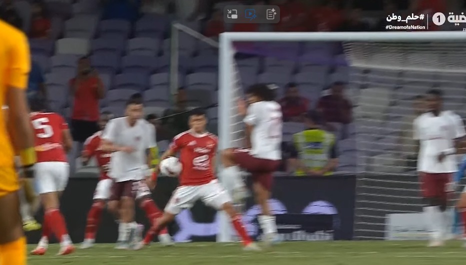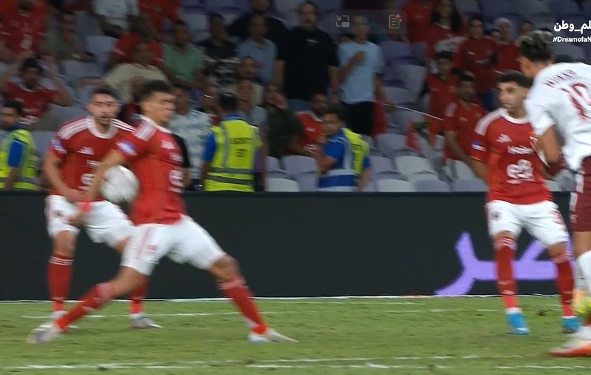 اصطدام الكرة بيد مدافع الأهلي في نصف نهائي السوبر