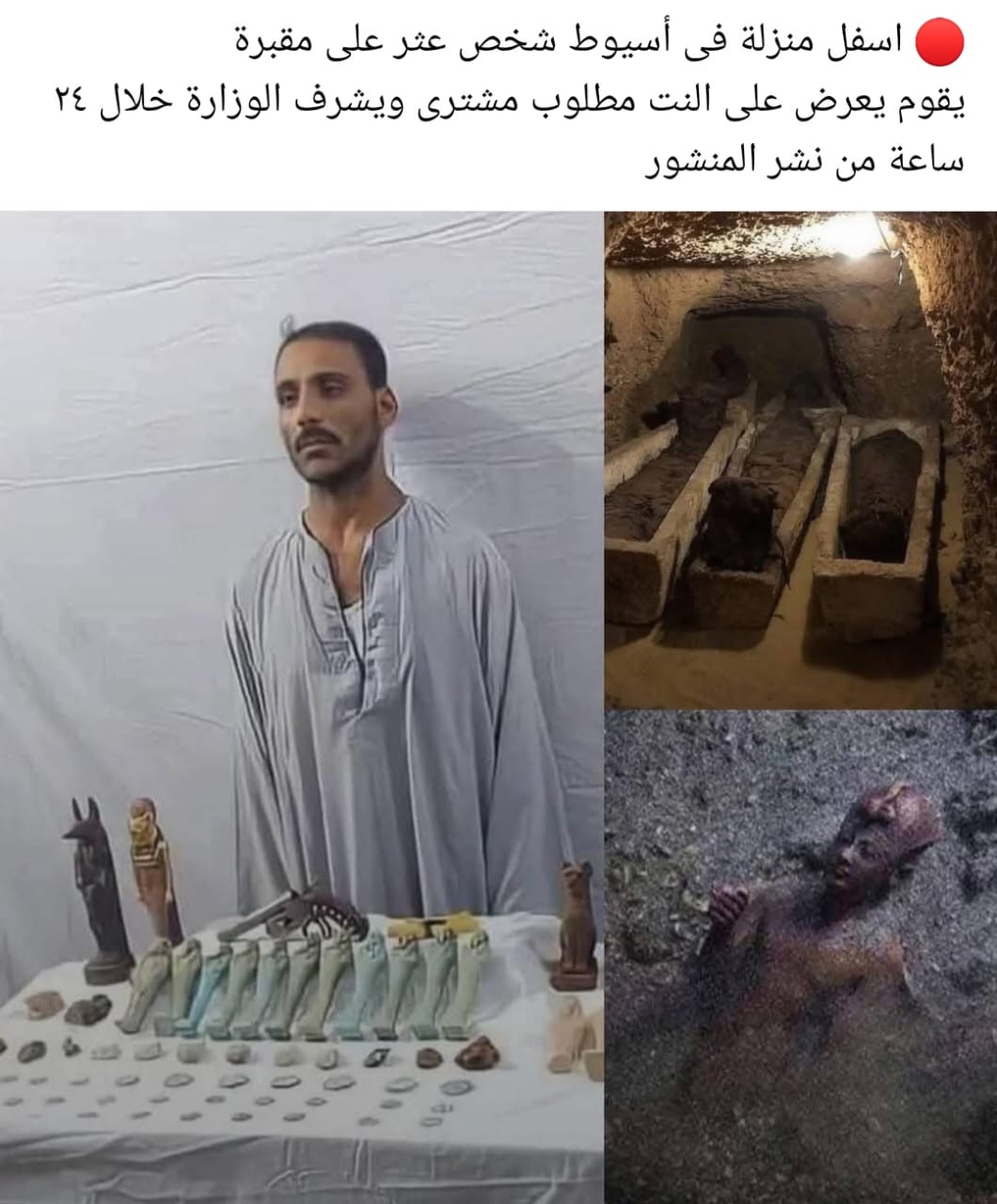 كشف مصدر أمني، حقيقة عثور مواطن على مقبرة أثرية وعرضها على الإنترنت بمحافظة أسيوط، وذلك بعد تصدر الواقعة ترند مواقع التواصل الاجتماعي.