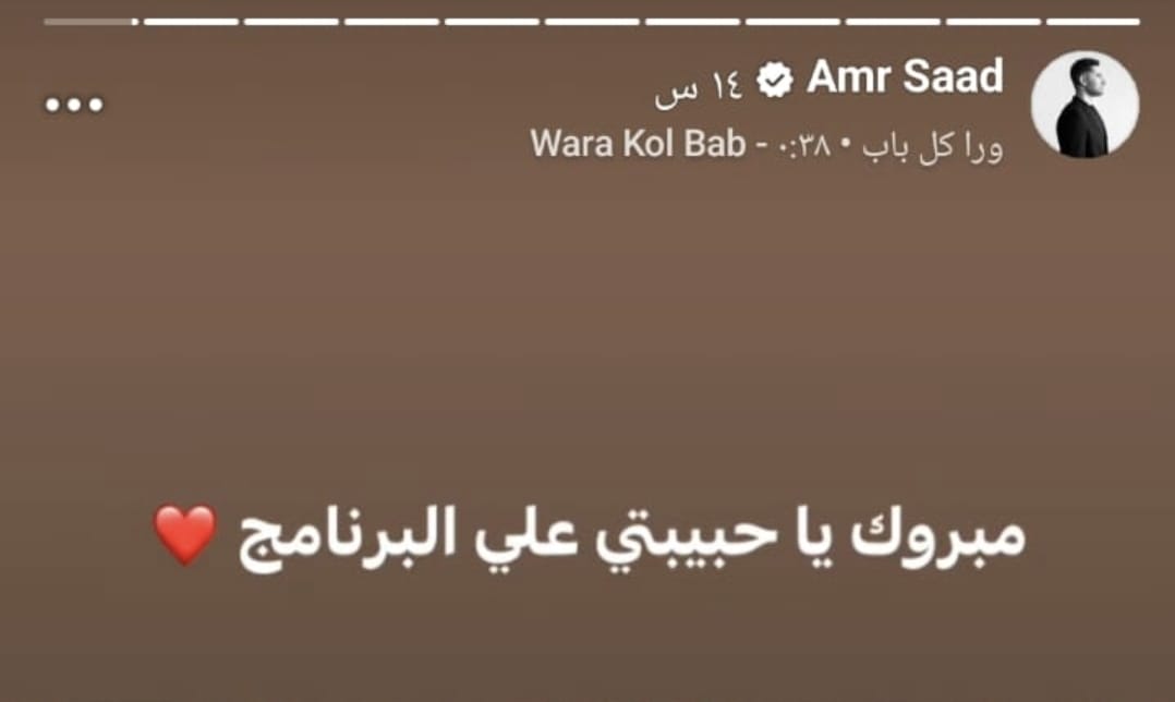 كما هنأها عبر خاصية ستوري على حسابه الشخصي بمنصة "إنستجرام"، وكتب: "مبروك ياحبيبتي على البرنامج".