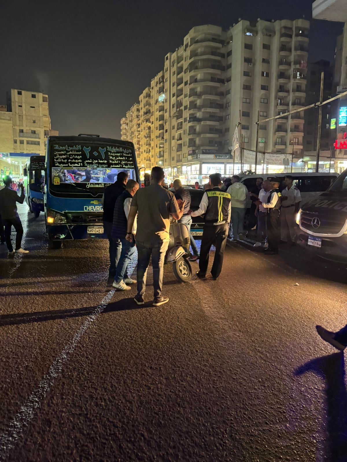 إصابة 5 أشخاص بحروق في تصادم ميكروباص وملاكي بدائري باسوس (صور)