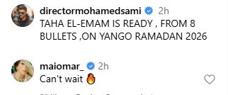 وعلّقت زوجته الفنانة مي عمر على المنشور في أول تفاعل لها بعد الكشف عن الشخصية، قائلة: "لا أستطيع الانتظار".