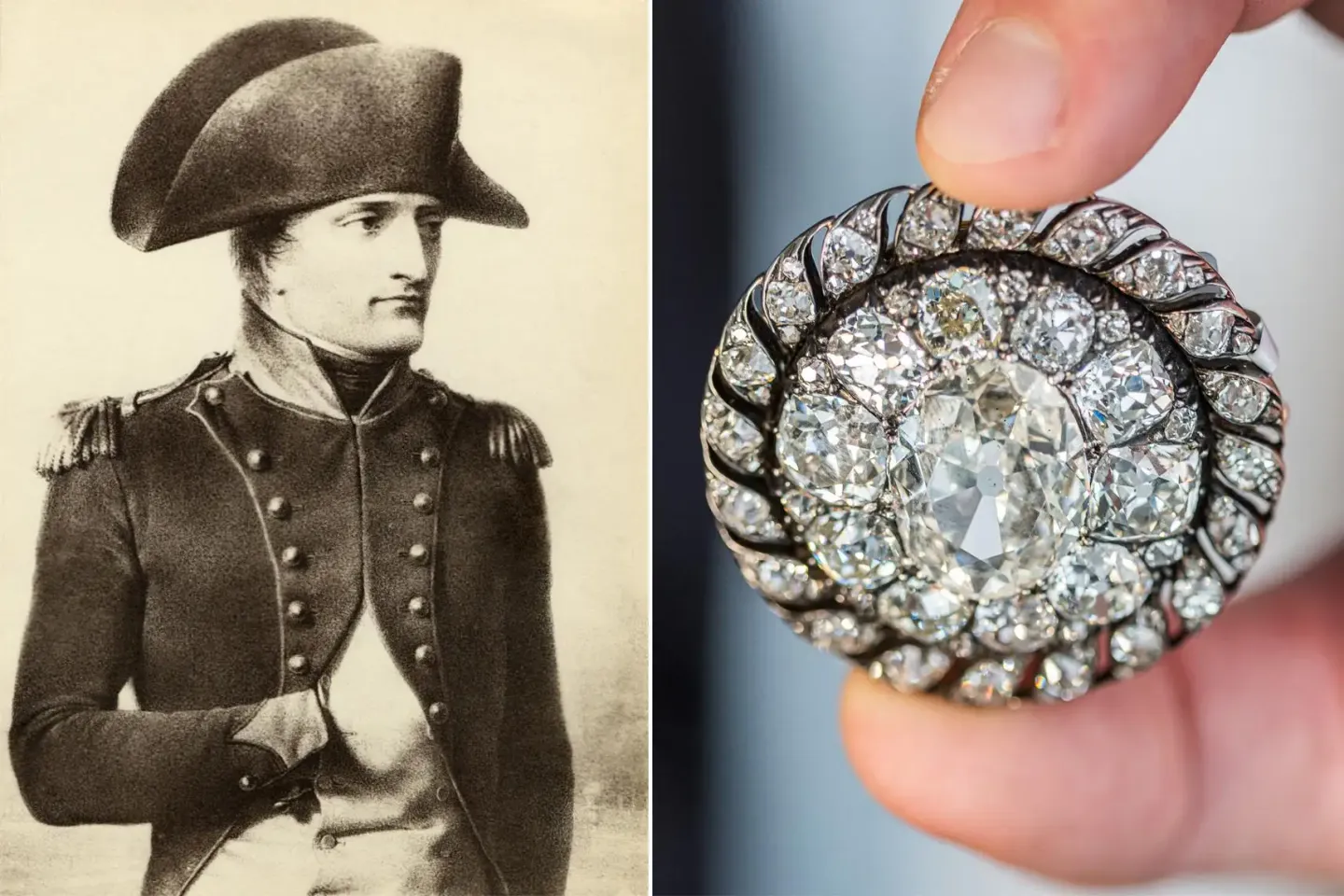 هذا البروش الدائري المصنوع من الألماس الخاص بنابليون يوجد اليوم ضمن المجموعات الملكية للملك تشارلز الثالث، وقد استولى عليه البروسيون، عشية معركة واترلو، وفقًا للصحيفة الفرنسية “paris match”.