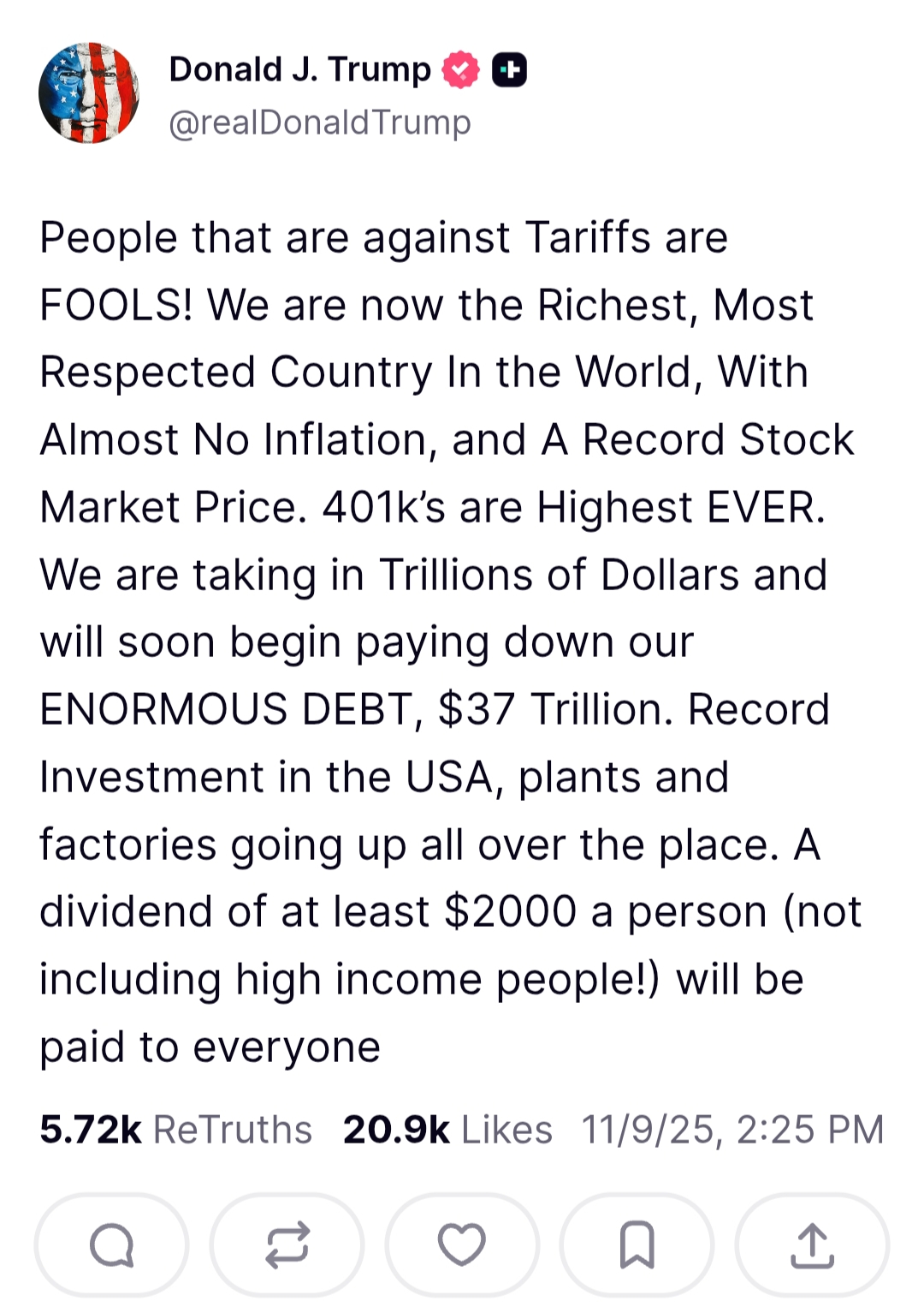 وكان ترامب قد طرح في وقت سابق فكرة منح المواطنين مبالغ نقدية مباشرة، إلا أنه لم يُقدم حينها على اتخاذ خطوات عملية لتنفيذها.