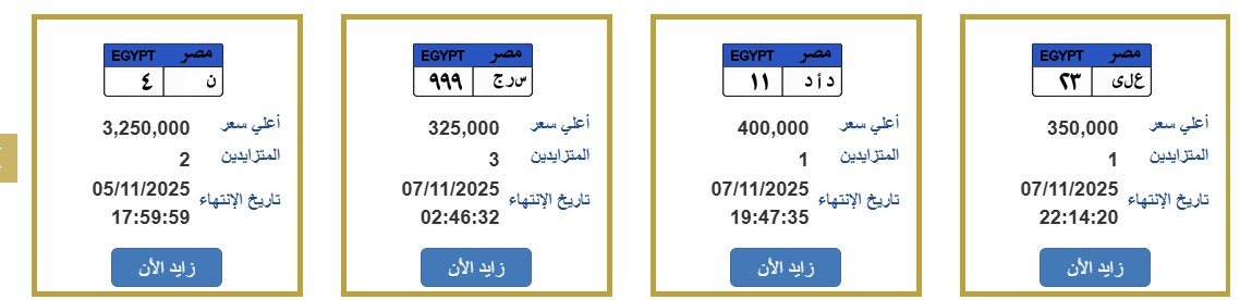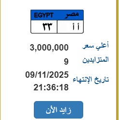 يتنافس عليها 9 أشخاص، لوحة مرور مميزة سعرها يتخطي 3 ملايين جنيه
