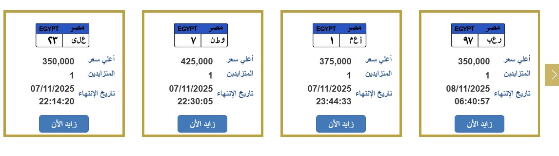 "سفن 7" بـ1.7 مليون جنيه.. مزايدات على 6 لوحات مرورية مميزة