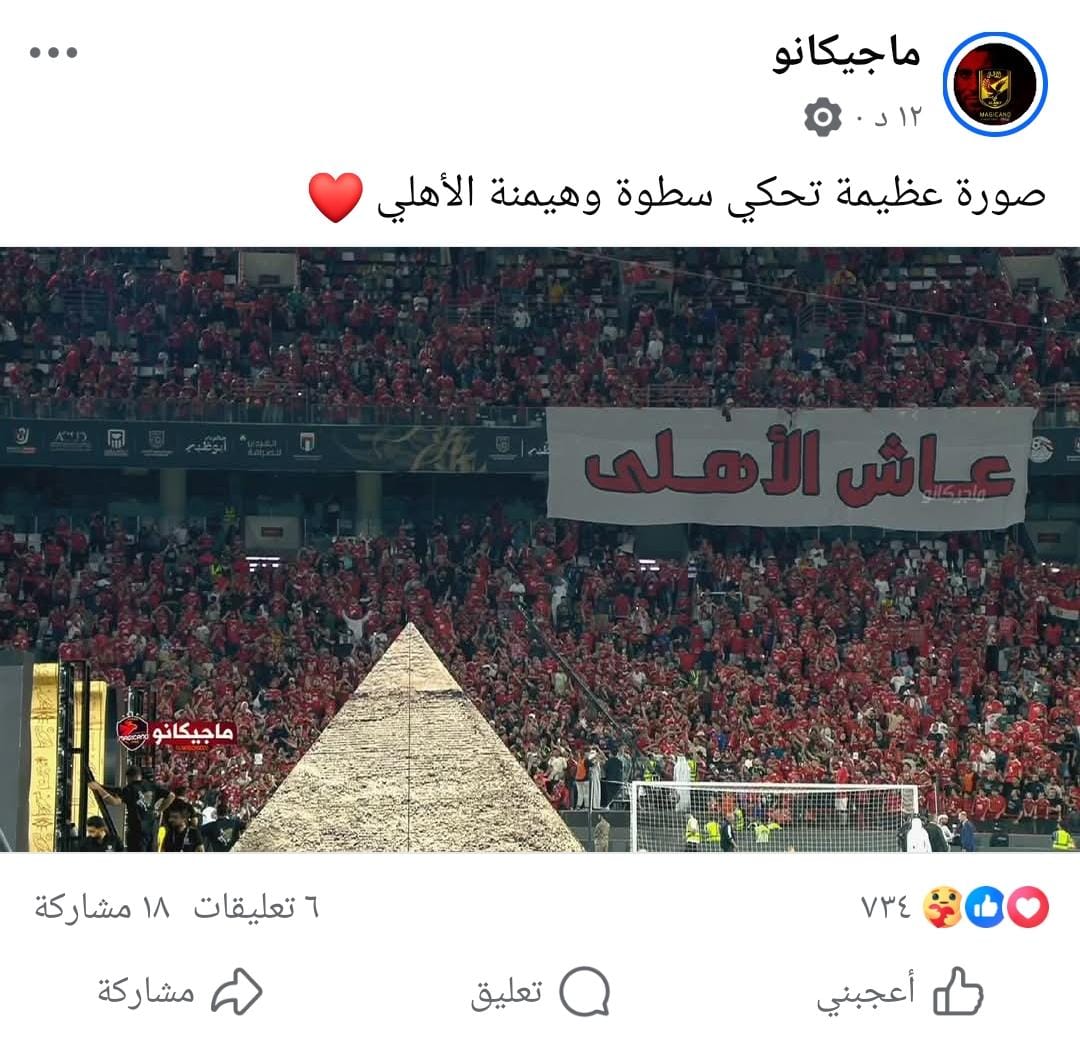 احتفت صفحات الجماهير بالفوز بالسوبر الخامس على التوالي، فأرفقت إحدى الصفحات صورة من المباراة شملت لافتة علقها الجماهيرفي المدرجات كتب عليها :"عاش الأهلي" .