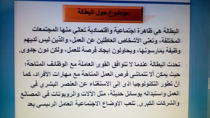 ونستعرض نماذج لكتابة موضوع تعبير عن البطالة، يُمكن للطلاب الاطلاع عليها خلال الصور التالية: