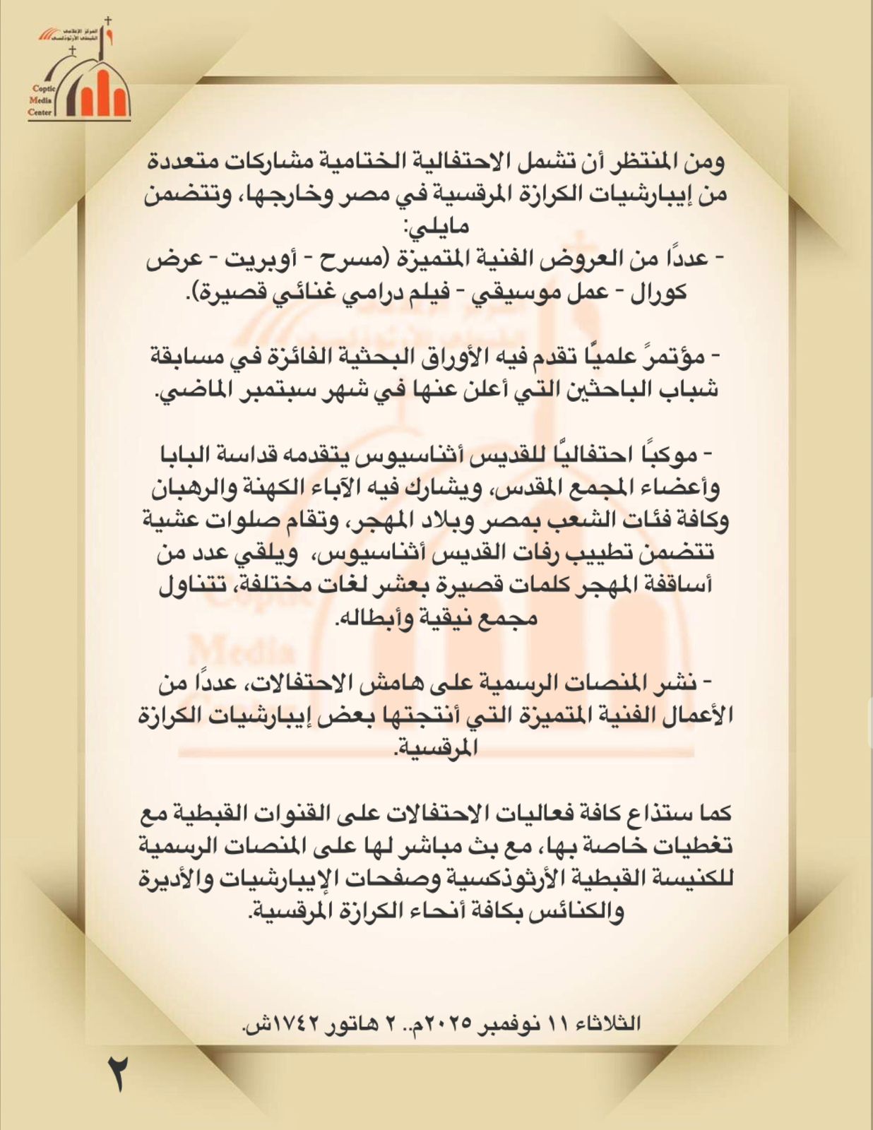 - نشر المنصات الرسمية على هامش الاحتفالات، عددًا من الأعمال الفنية المتميزة التي أنتجتها بعض إيبارشيات الكرازة المرقسية.