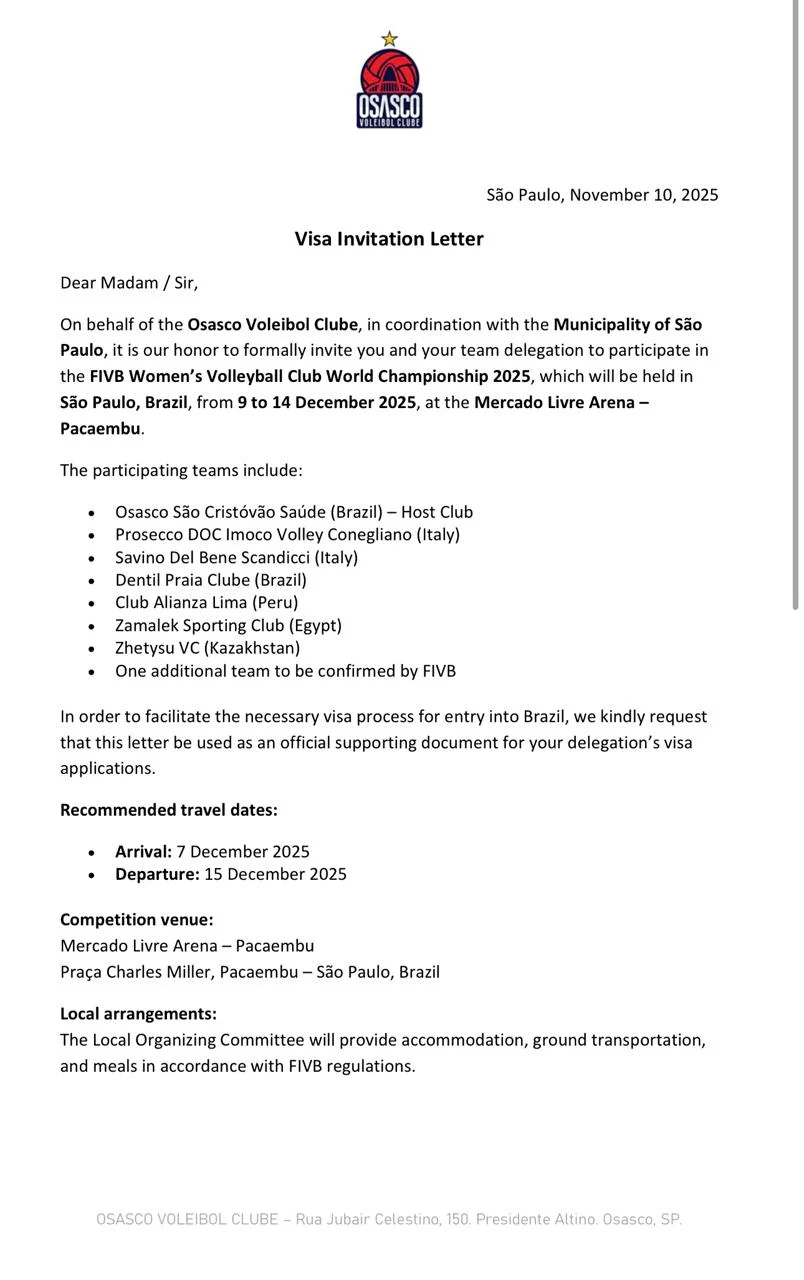 تلقى اتحاد الكرة الطائرة، خطاب الدعوة الرسمية لمشاركة فريق سيدات نادي الزمالك في بطولة العالم للأندية، المقرر إقامتها في البرازيل خلال الفترة من 9 إلى 14 ديسمبر المقبل.