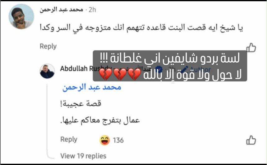وكتب أحد المتابعين له عبر خاصية التعلقيات: “ يا شيخ إيه قصة البنت قاعدة تتهمك إنك منزوجها في السر”. ورد عليه رشدي: “قصة عجيبة، بتفرج معاكم عليها”.
