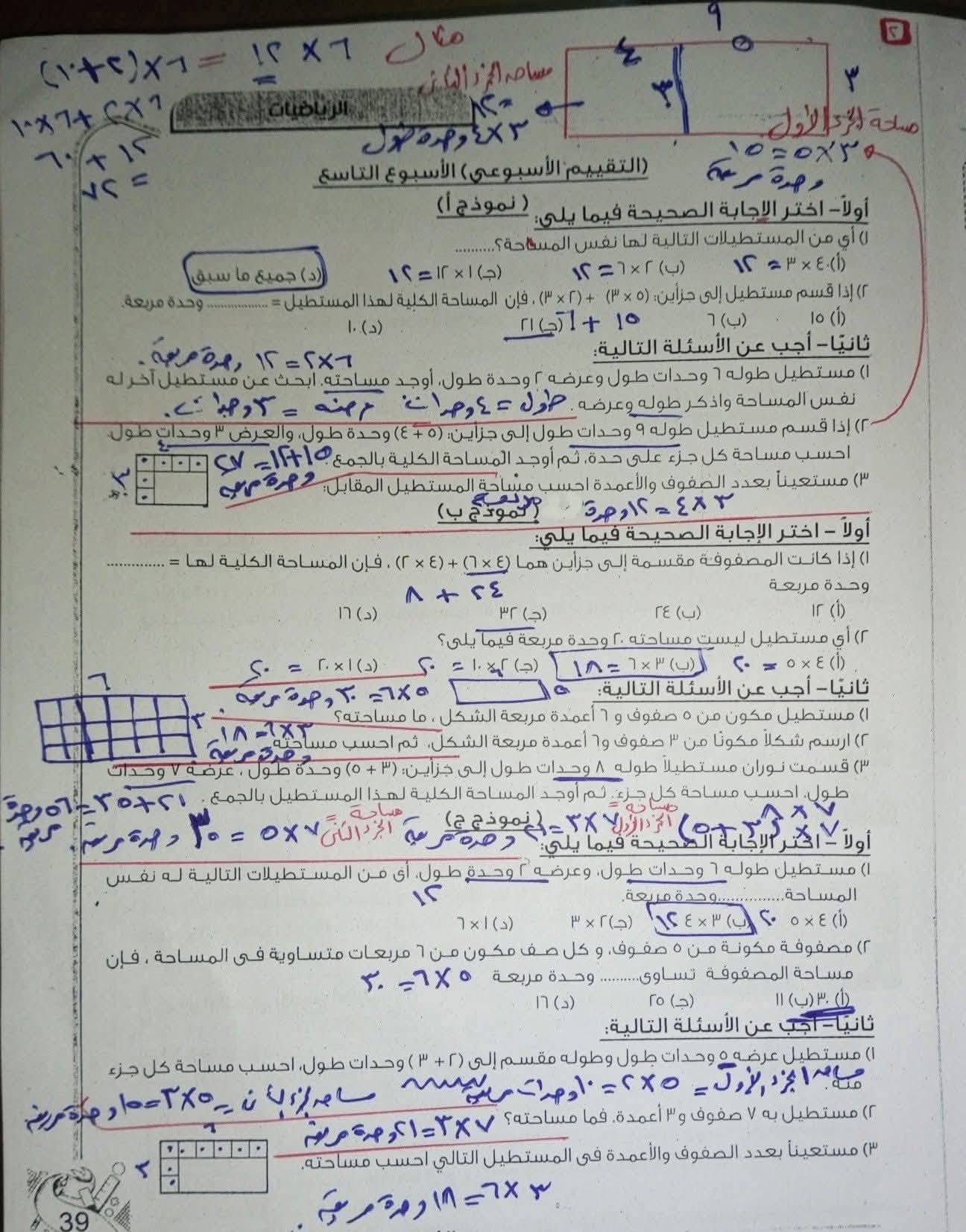 كما يمكن لطلاب الصف الثالث الابتدائي الاطلاع على حل تقييم الأسبوع التاسع مادة الرياضيات من خلال الصور التالية: