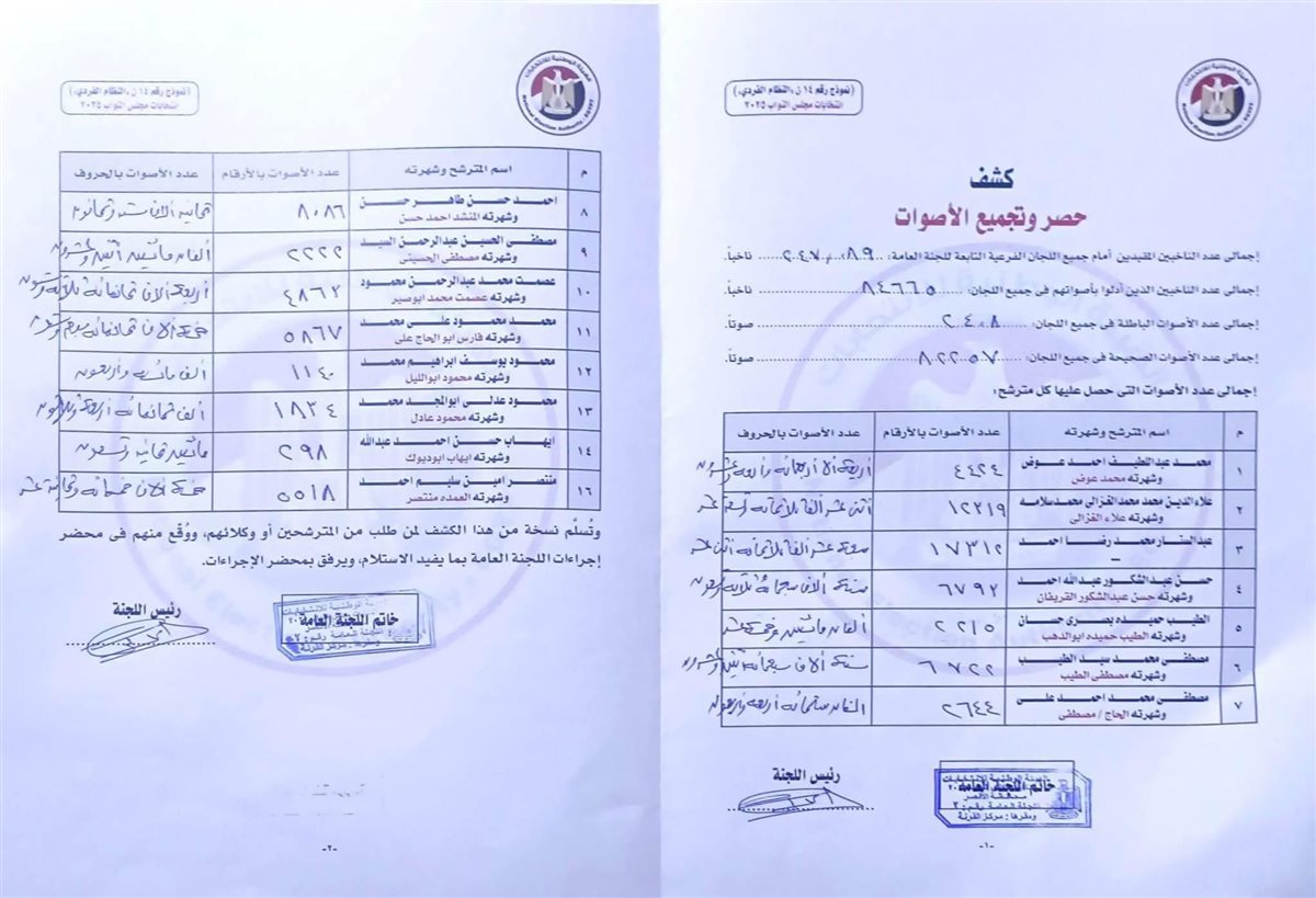 - إجمالي عدد الأصوات الباطلة في جميع اللجان: 2,408.