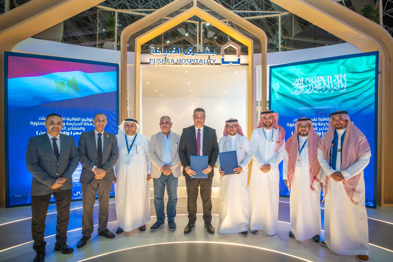 وقع الوكيل الدائم لوزارة التضامن الاجتماعي، أيمن عبد الموجود، عقد تقديم الخدمات لحجاج الجمعيات الأهلية في مكة المكرمة والمدينة المنورة والمشاعر المقدسة لموسم حج 1447هـ-2026م، مع شركة بشرى الضيافة السعودية، وذلك ضمن فعاليات مؤتمر ومعرض الحج 2025 المقام في جدة.