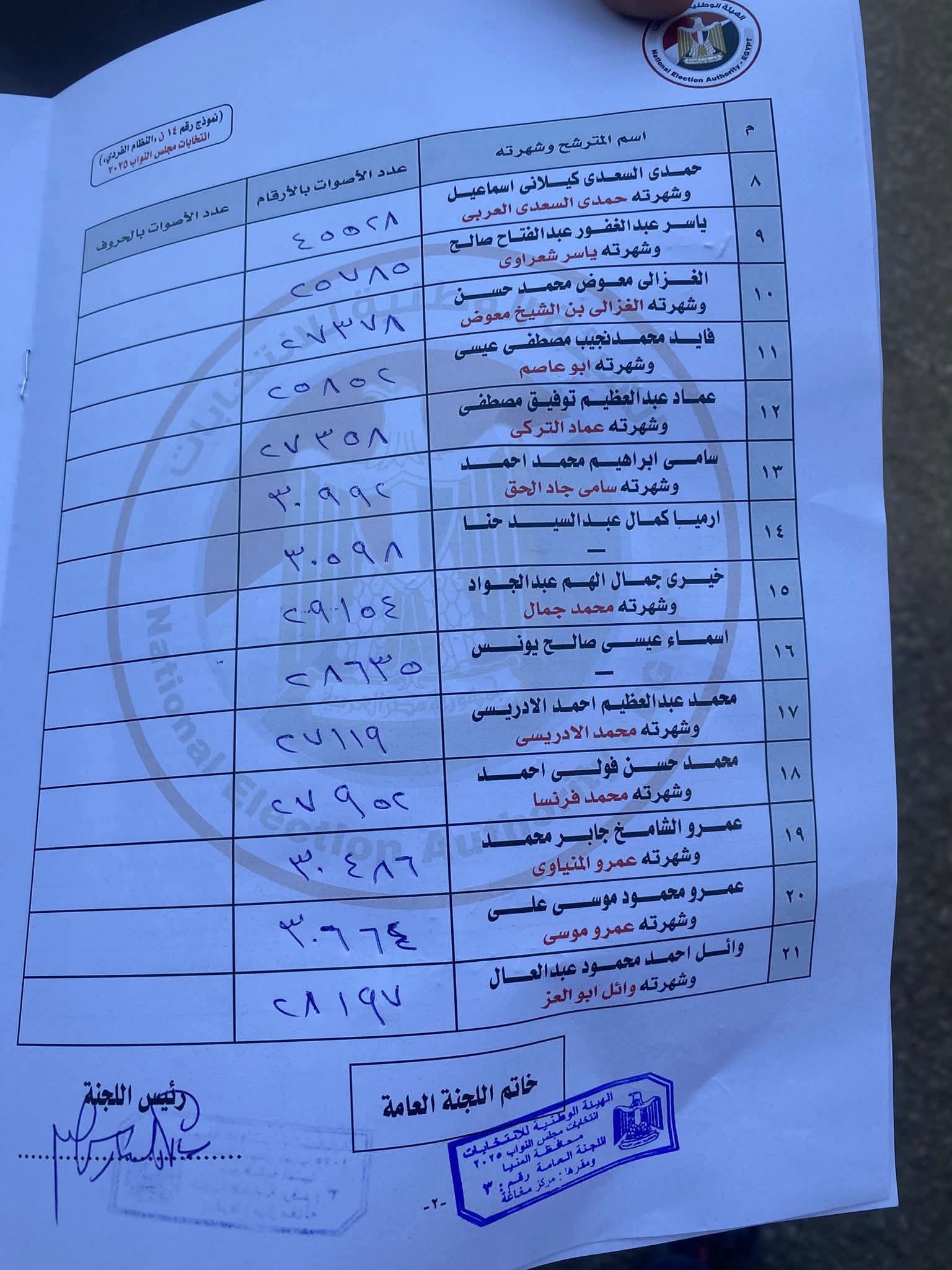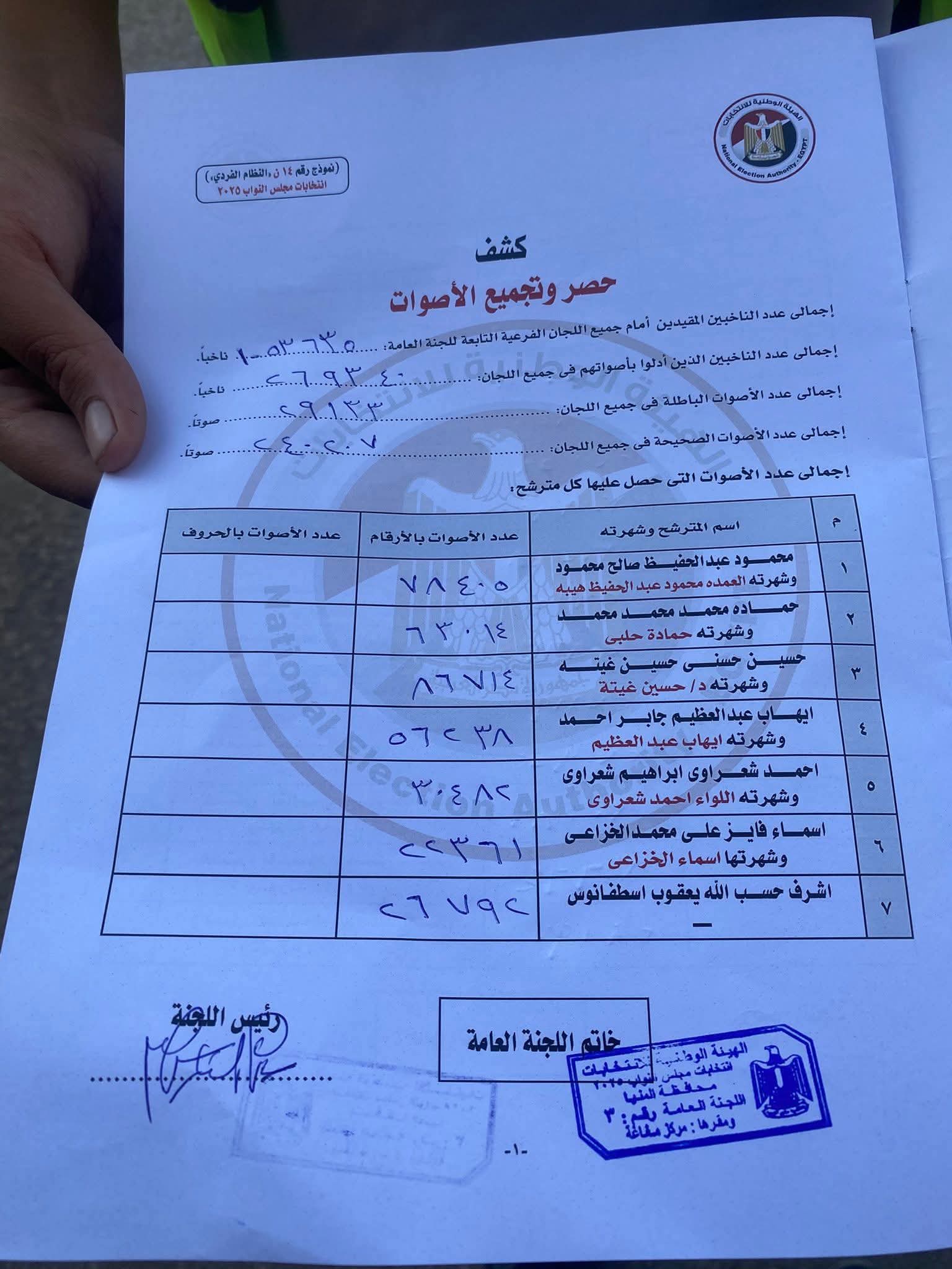 وأكدت الهيئة الوطنية للانتخابات أن هذه الأرقام تمثل حصرًا عدديًا أوليًا من لجان الفرز، وليست النتيجة الرسمية النهائية، والتي ستُعلن لاحقًا بعد استكمال جميع الإجراءات القانونية.