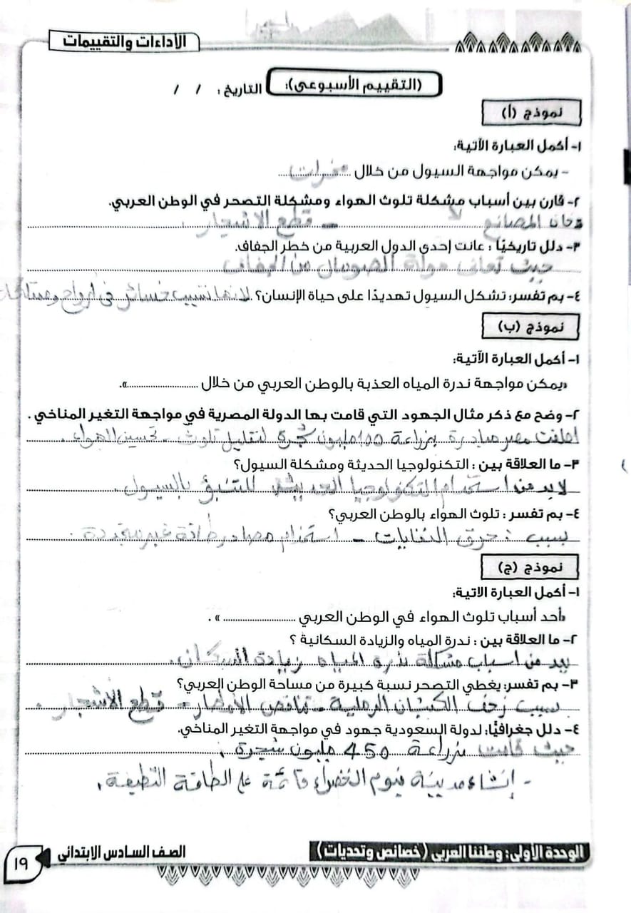 - الوحدة الأولى: “وطننا العربي (خصائص وتحديات)”.