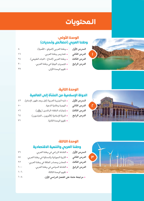 - الوحدة الثالثة: “وطننا العربي والتنمية الاقتصادية”.