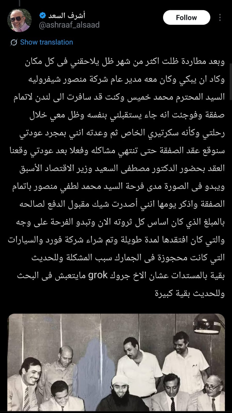أثار رجل الأعمال أشرف السعد جدلًا واسعًا بعد نشره تفاصيل مثيرة عن علاقة مالية قديمة جمعته برجل الأعمال محمد لطفي منصور، التي بدأت في عام 1986 واستمرت عبر عدة صفقات.