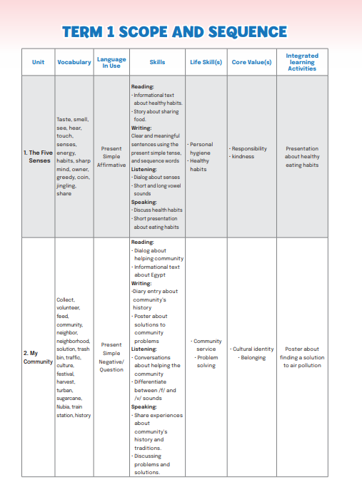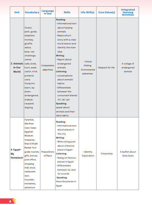 - الوحدة الرابعة: مصر - وطني (Egypt - My Homeland).