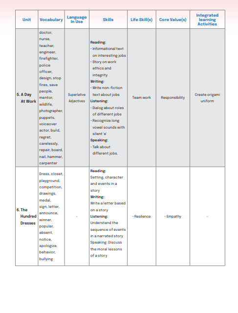 يتضمن منهج اللغة الإنجليزية 6 وحدات دراسية تغطي المهارات الأساسية في