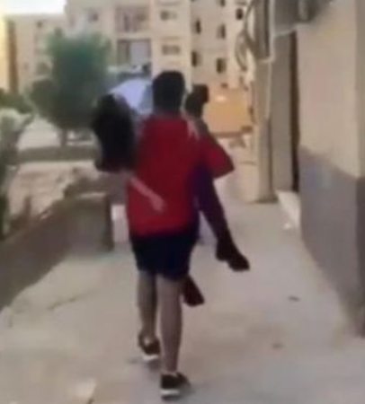 رجل يحمل زوجته بعد فقدها الوعي - جانب من الفيديو المتداول