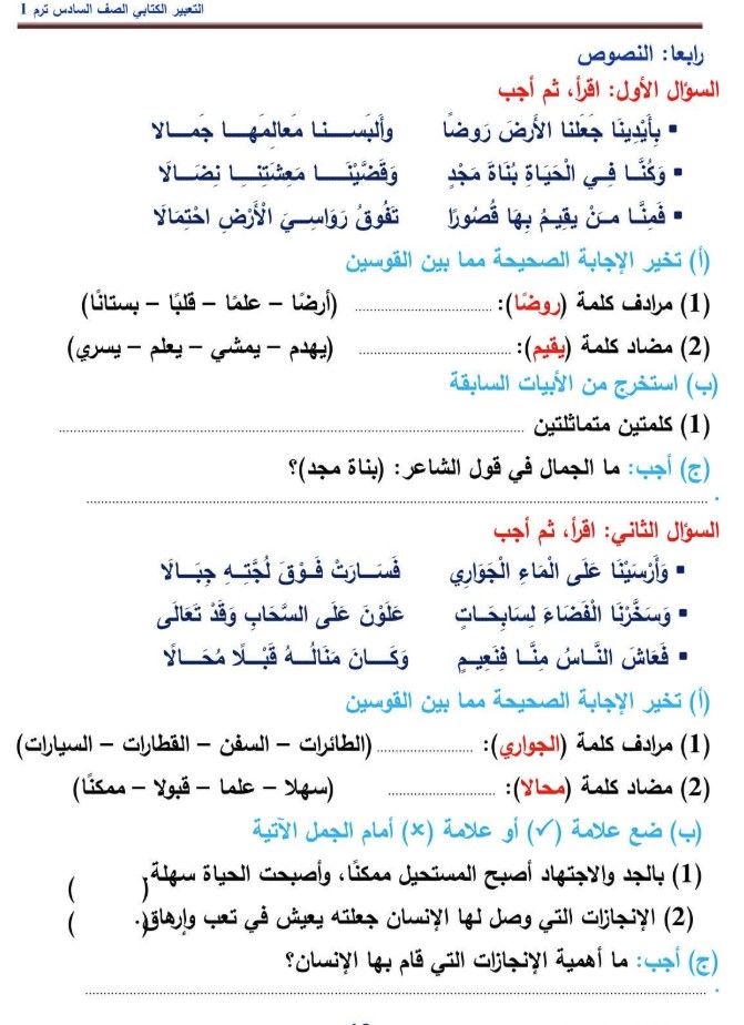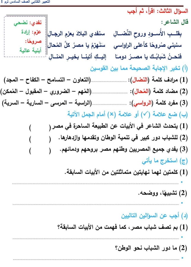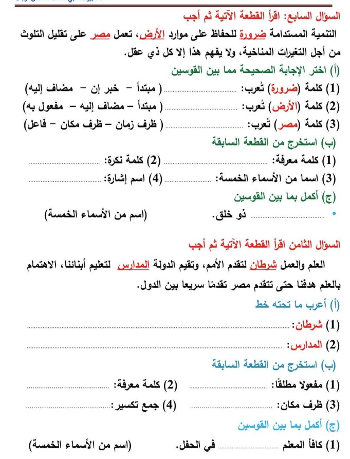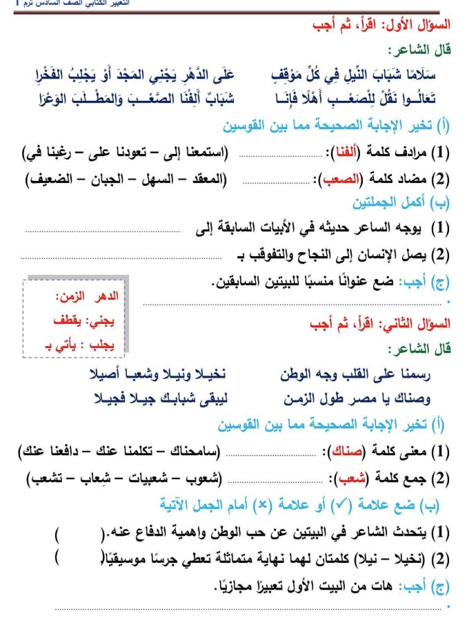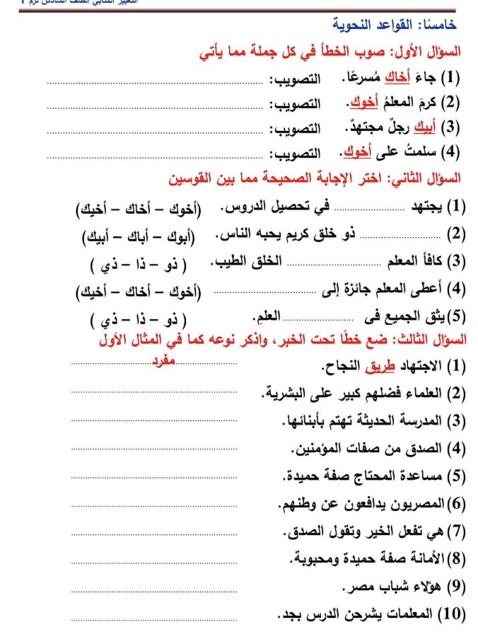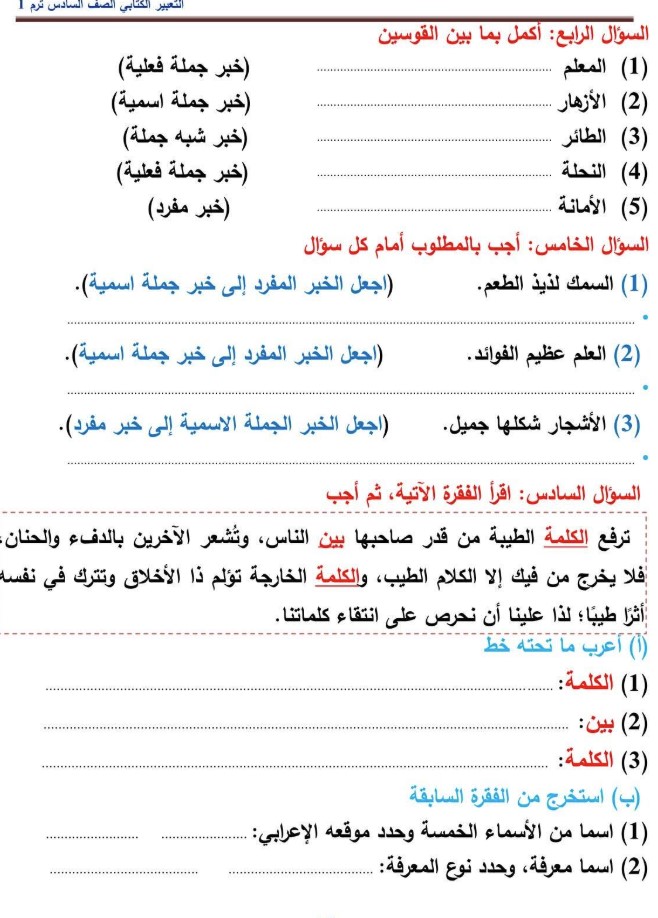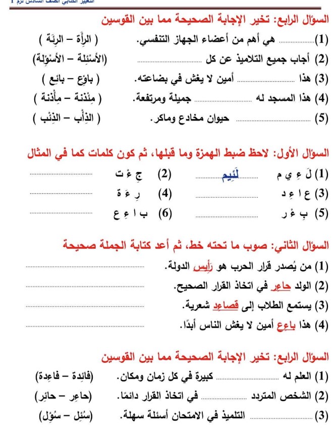 يمكن لطلاب الصف السادس الابتدائي الاطلاع على مراجعة شهر نوفمبر 2025 للصف السادس الابتدائي الخاصة بمادة اللغة العربية من خلال الصور التالية: