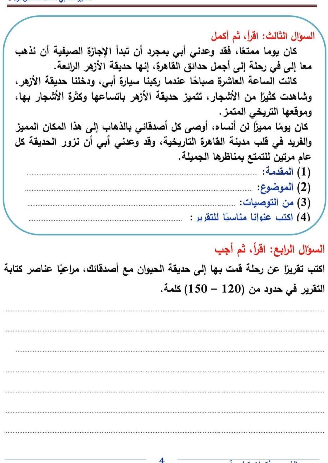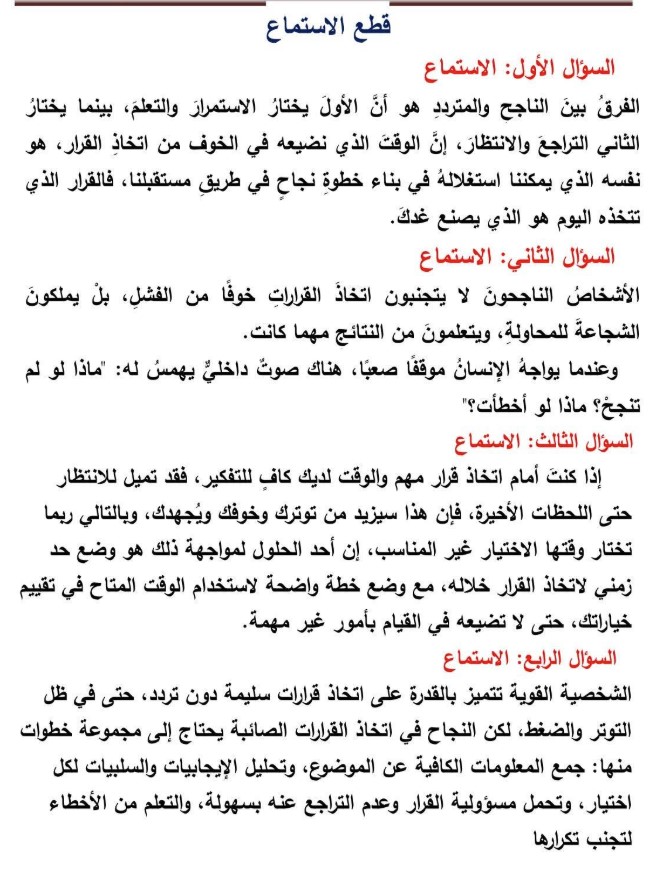 - أسئلة قراءة متدرجة لقياس الفهم والاستيعاب.