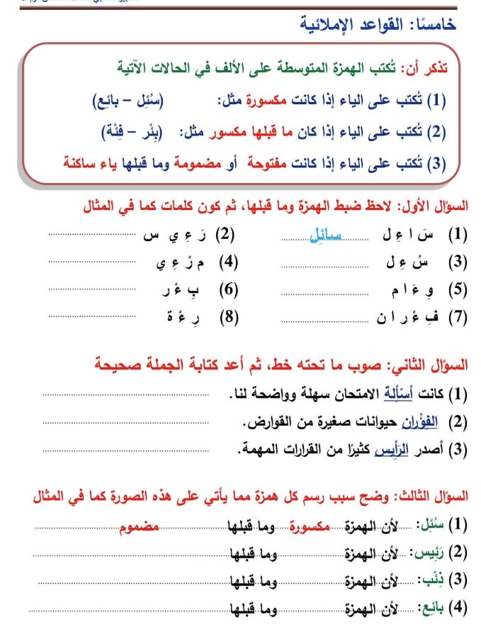 - تمارين إملاء مركزة لضبط قواعد الكتابة.