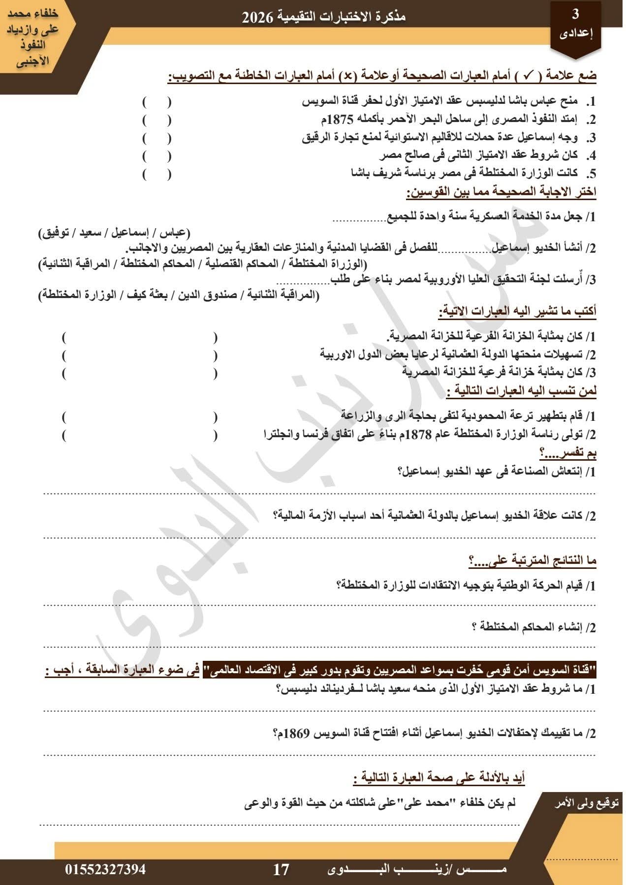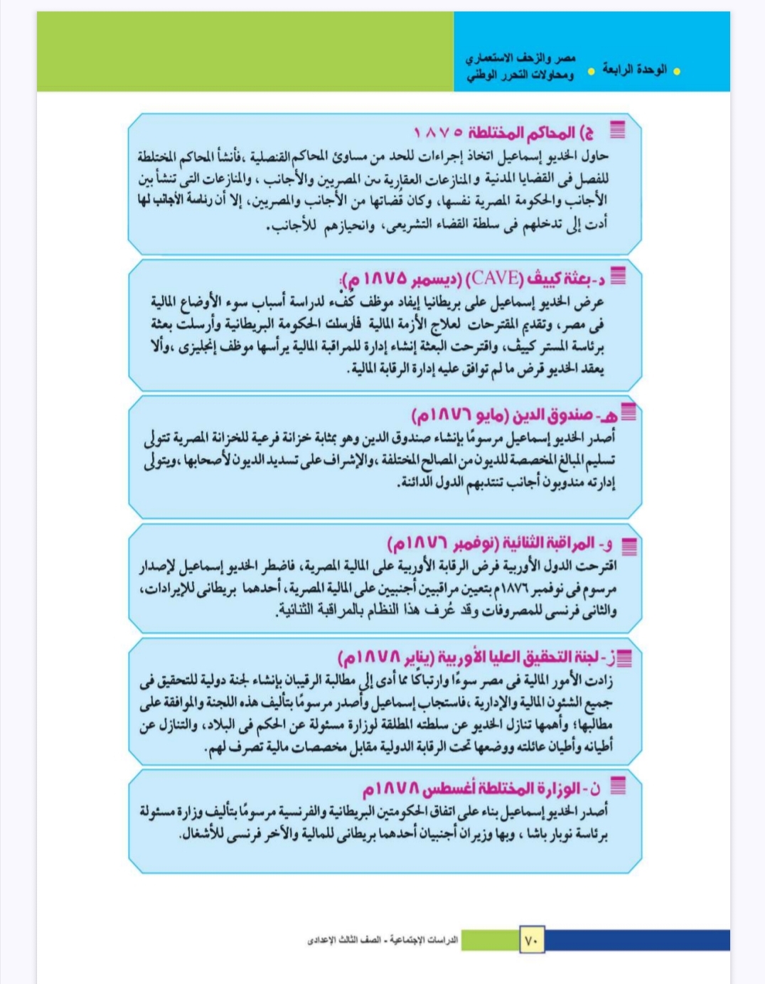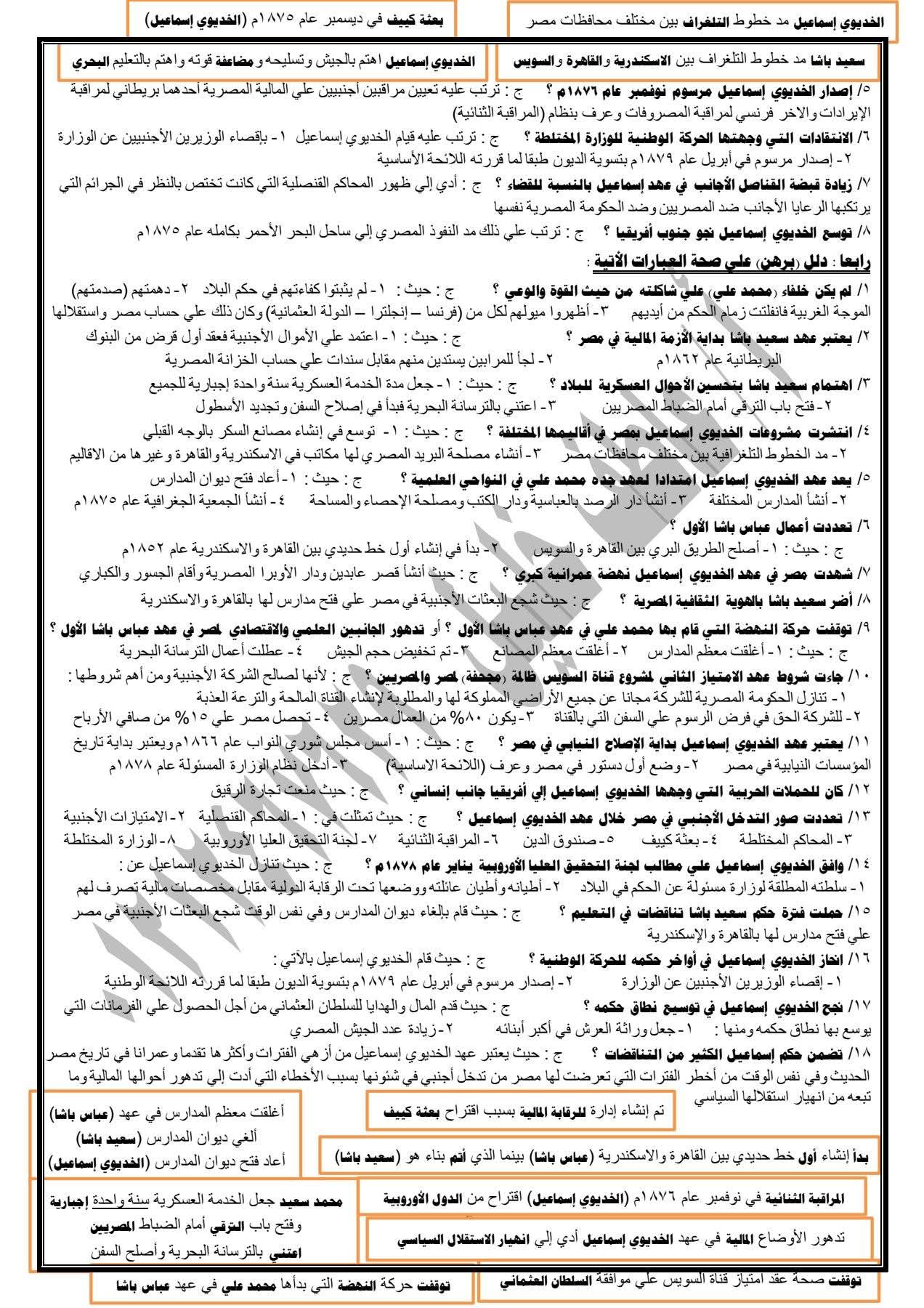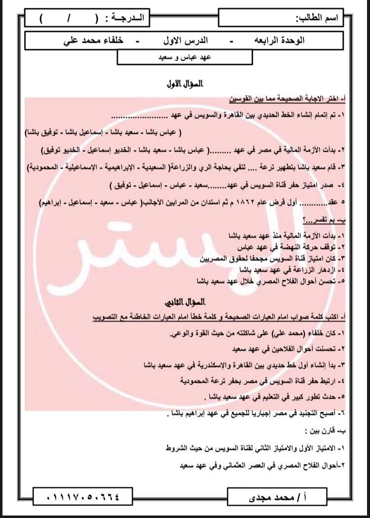 والتدريب على درس خلفاء محمد علي وازدياد النفوذ الأجنبي يتضمكن الطلاب من حل الأسئلة التالية: