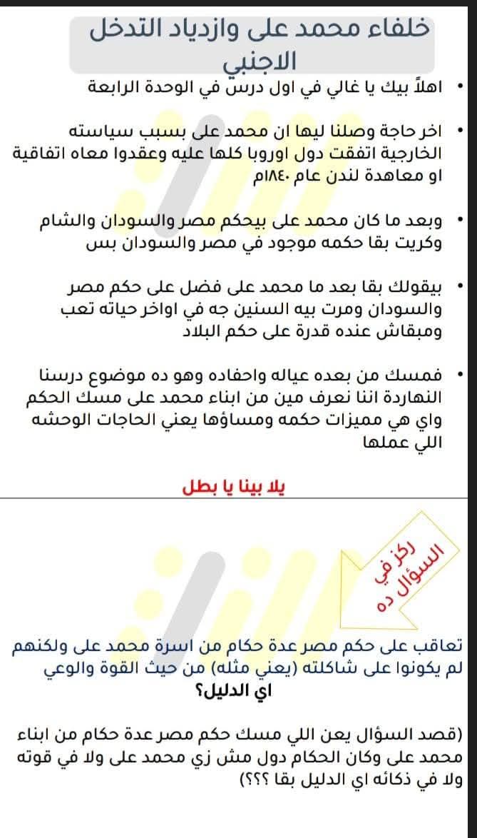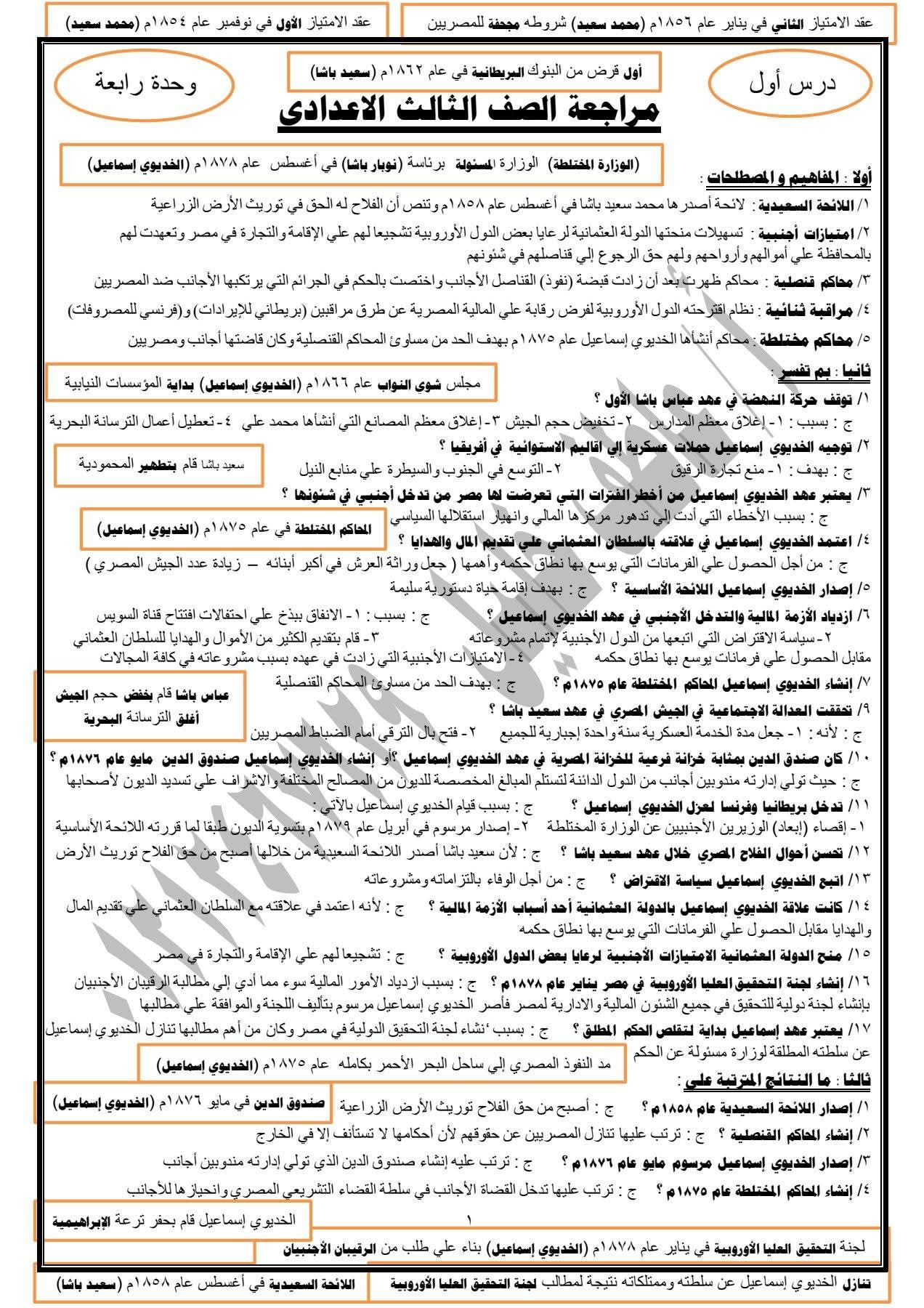 ويستطيع طلاب الصف الثالث الإعدادي الاطلاع على شرح درس خلفاء محمد علي وازدياد النفوذ الأجنبي كالتالي: