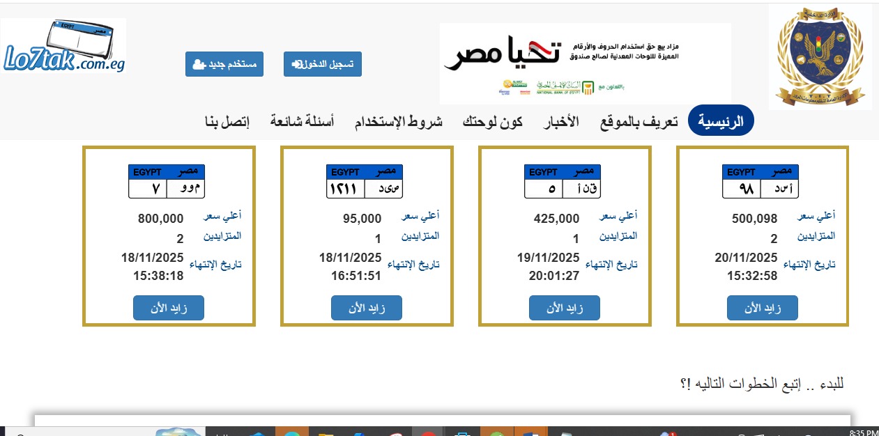 المرور تطرح 6 لوحات مميزة.. أبرزها يتخطى 2 مليون جنيه
