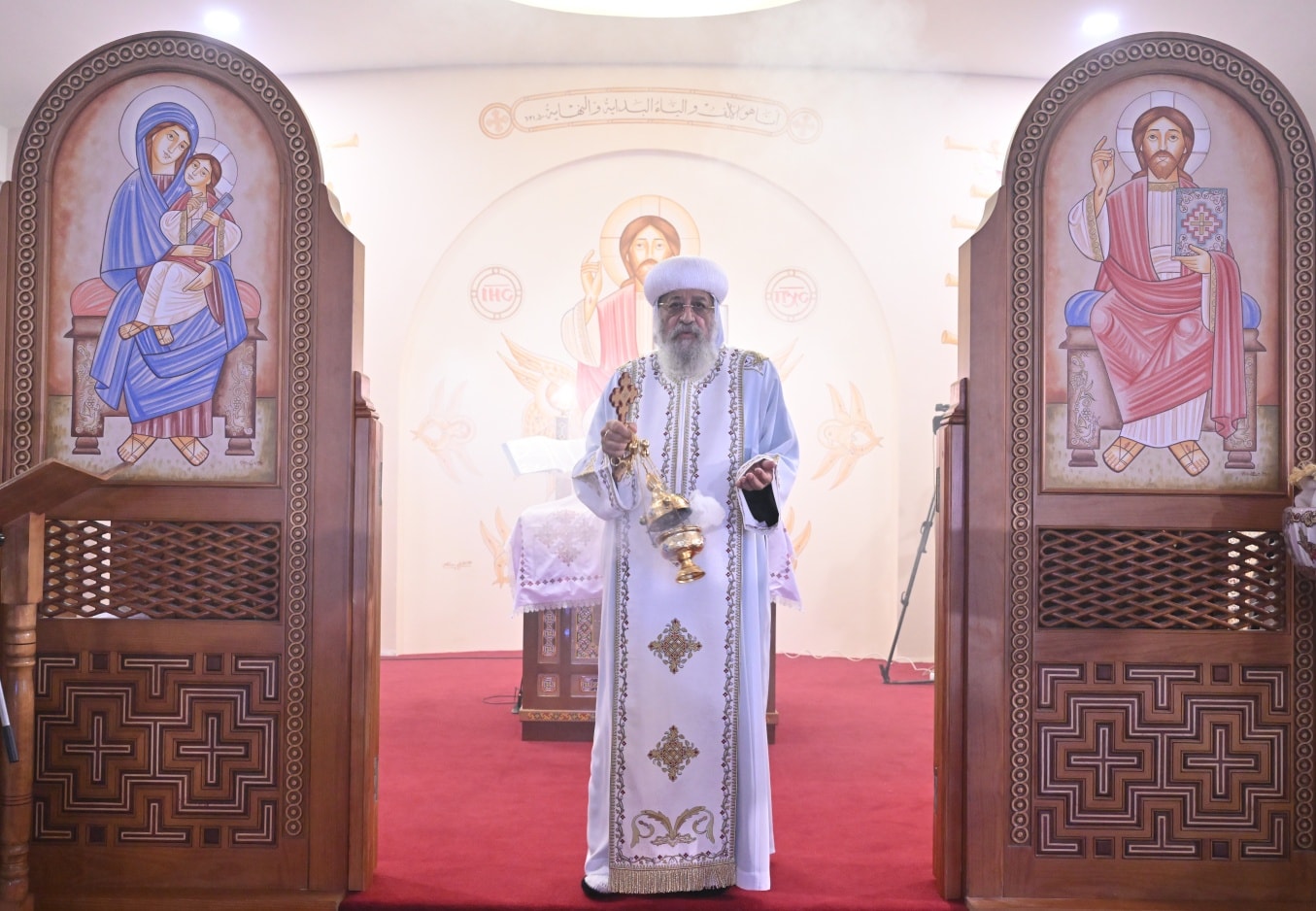 وتابع: "كل ما في هذه الكنيسة من أعمدة وأيقونات يحكي تاريخ قانون الإيمان في المجامع المسكونية الثلاثة والآباء العظام ، فاليوم 9 هاتور هو تذكار انعقاد مجمع نيقية".
