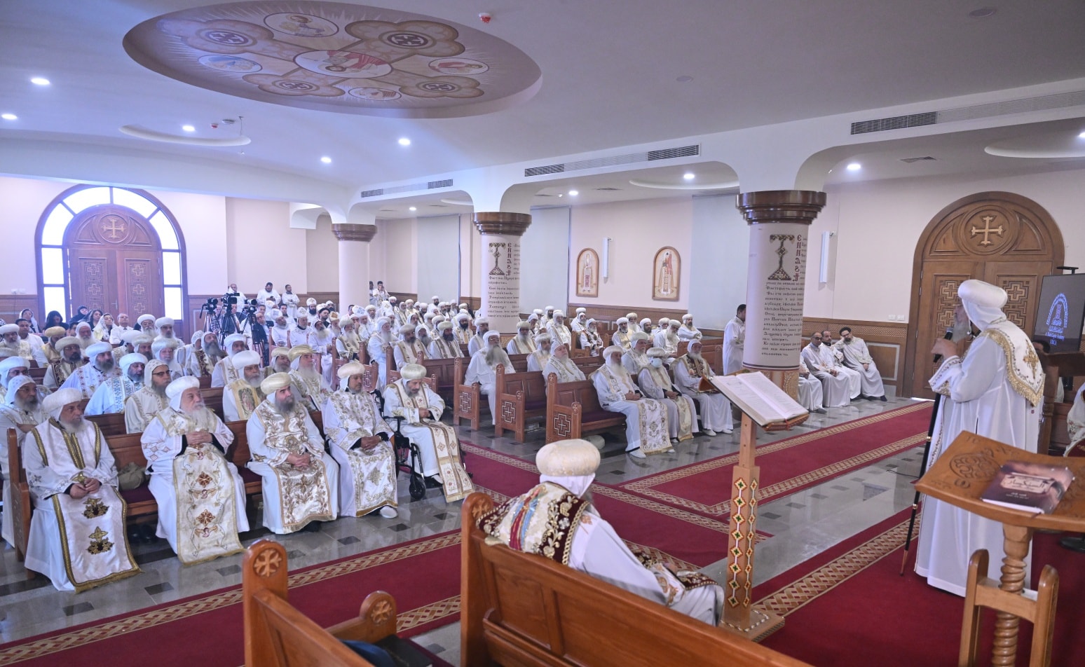 وأضاف: كما نشكر الله كثيرًا على افتتاح هذه الكنيسة التي نسميها كنيسة آباء المجامع المسكونية المنعقدة في نيقية والقسطنطينية وأفسس والذين وضعوا لنا قانون الإيمان ، وبالاختصار نسميها "كنيسة قانون الإيمان".