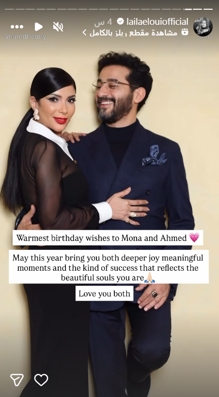 ونشرت ليلى علوي صورة للثنائي أحمد حلمي ومنى زكي عبر حسابها الرسمي على منصة “إنستجرام” معلقة عليها: “أطيب التمنيات بعيد ميلاد منى وأحمد”.