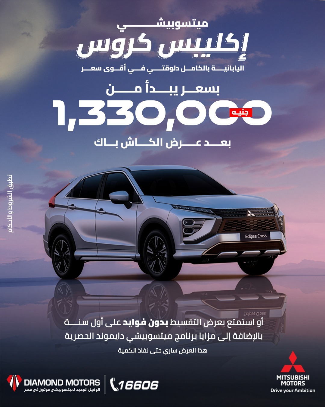 كشفت شركة دايموند موتورز، التابعة لمجموعة الملا الكويتية، وكيل علامة ميتسوبيشي في مصر، عن عروض كاش باك لأسعار سيارة إكليبس كروس 2025 المطروحة في السوق المحلي بخمس فئات.
