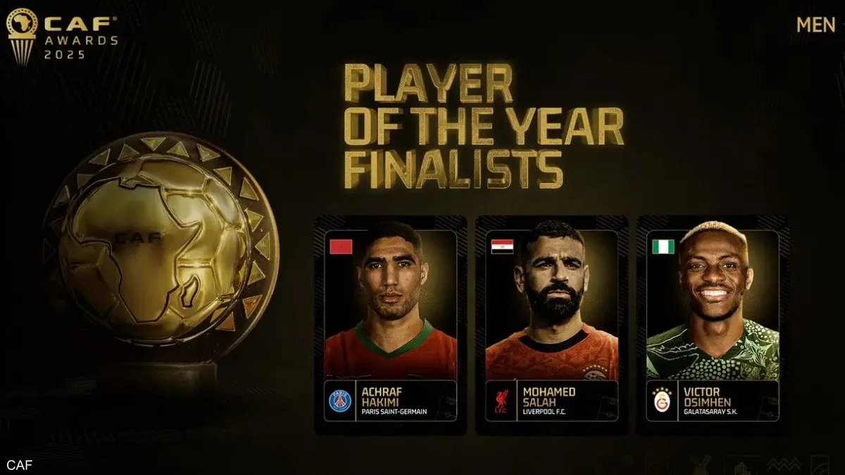 أعلن الاتحاد الإفريقي لكرة القدم (كاف) عن القائمة النهائية للمرشحين لجائزة أفضل لاعب في إفريقيا لعام 2025، والتي تصدرها النجم المصري محمد صلاح، لاعب ليفربول الإنجليزي، وجاءت كما يلي: