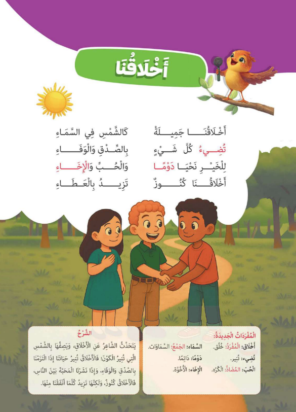 شرح نشيد أخلاقنا للصف الثالث الابتدائي 2025-2026