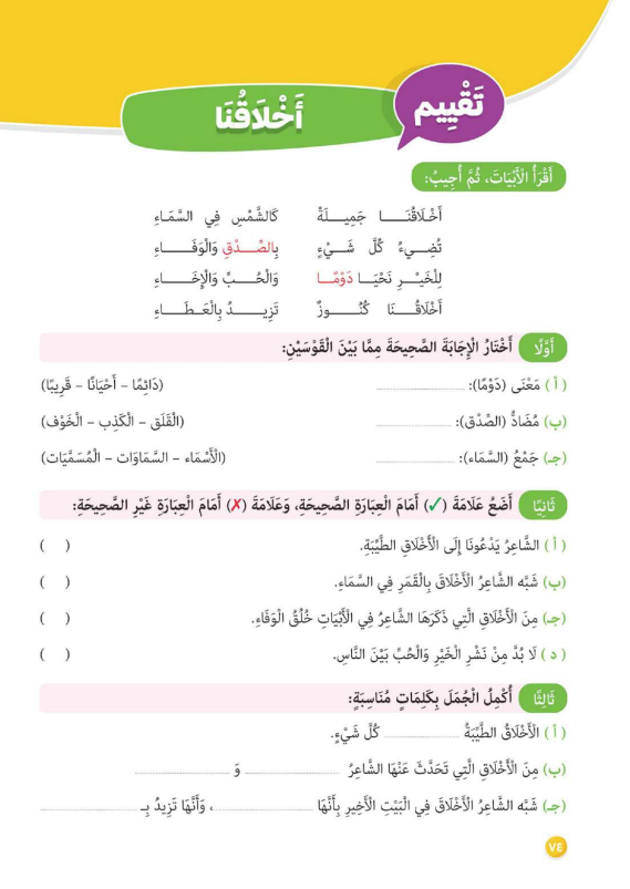 تدريبات على نشيد أخلاقنا للصف الثالث الابتدائي 2025-2026