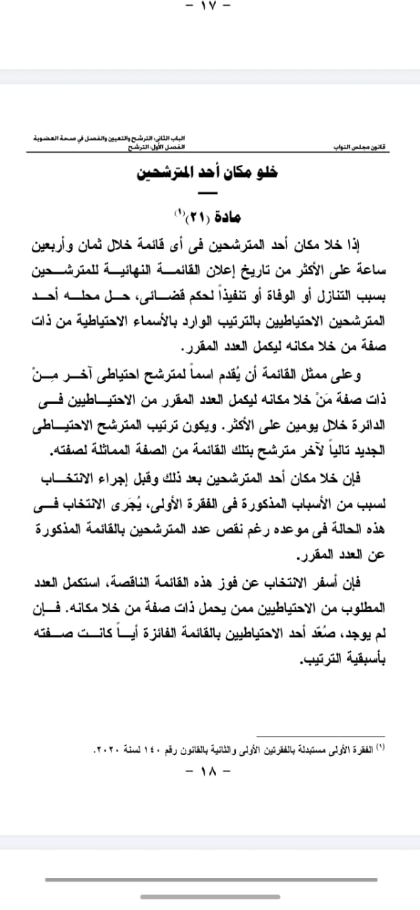 ماذا يحدث في حال خلو مقعد مرشح؟