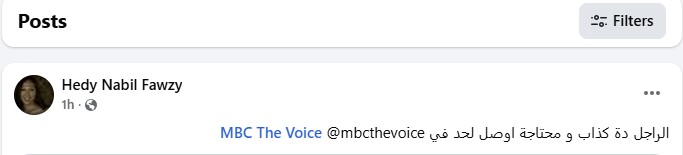 وكتبت حفيدة فوزي عبر حسابها الشخصي على منصة “فيسبوك”: "الراجل ده كذاب ومحتاجة أوصل لحد في Mbc The Voice".