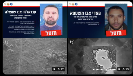 وأوضح الجيش، أن القياديين هما عبد الله أبو شمالة، رئيس المنظومة البحرية في "حماس"، وفادي أبو مصطفى، المسؤول عن الأنفاق في الكتائب بمنطقة خان يونس.
