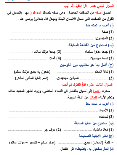 نماذج امتحانات لغة عربية PDF للصف الثالث الابتدائي ترم أول 2025