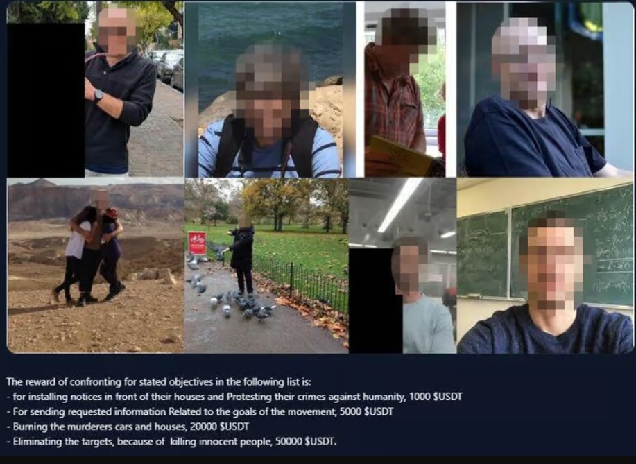 كما دعا الموقع منظمات مسلحة وكيانات غير حكومية للانضمام إلى معاقبة العلماء، عارضًا مكافآت سخية للمشاركين، إضافة إلى حوافز مضاعفة للمواطنين الإسرائيليين الذين يساعدون في تنفيذ الهجمات.