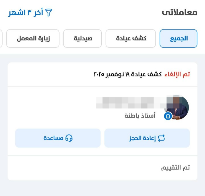 كشف الشاب عن تواصل جهة مختصة في التطبيق معه شخصيًا، وإبلاغه بالتالي: "قفلنا الحجز لدى الطبيب على التطبيق، نراجع أوراقه مرة أخرى، وفور انتهاء التحقيقات، سيتم إبلاغك بها بشكل شخصي".