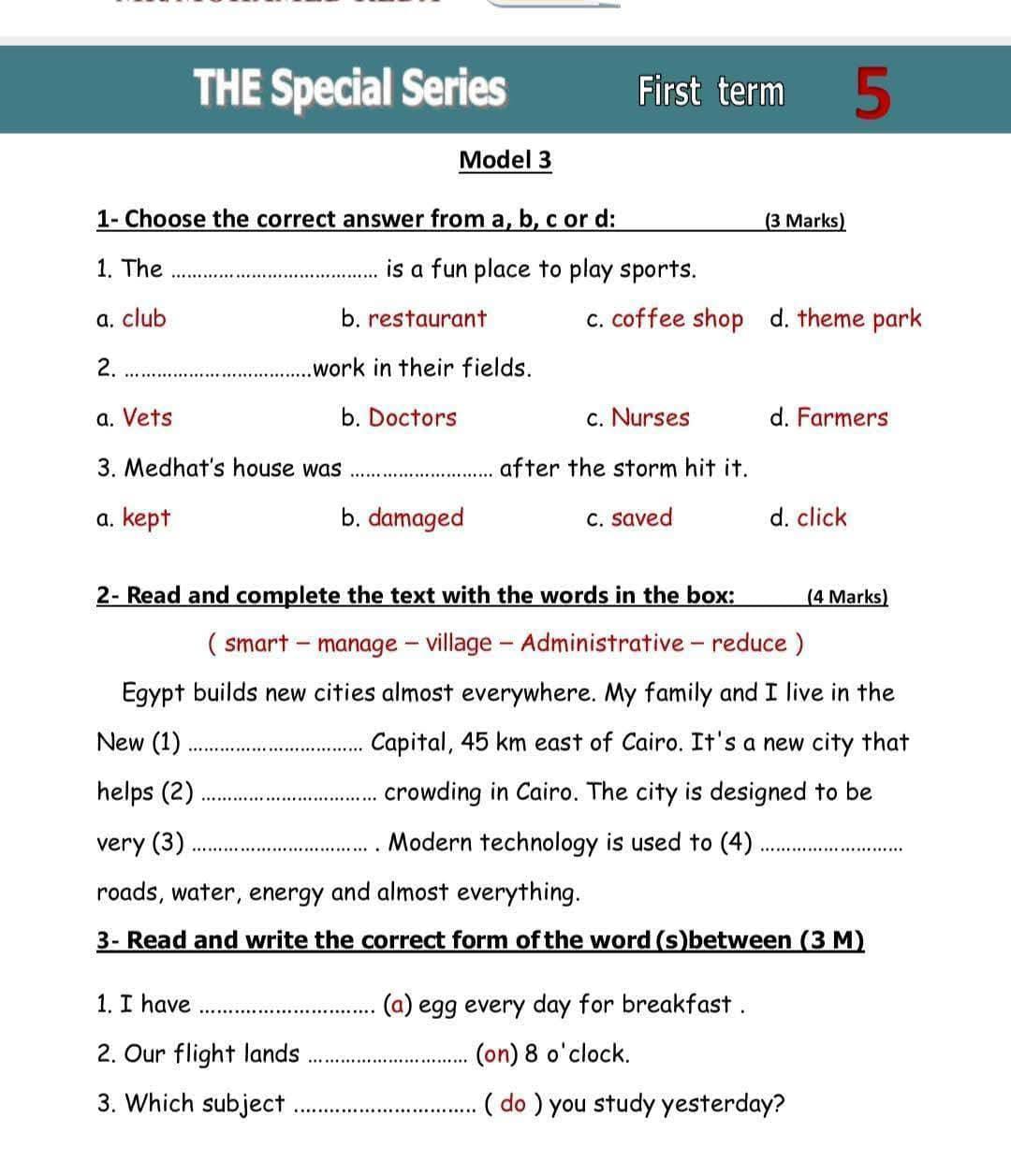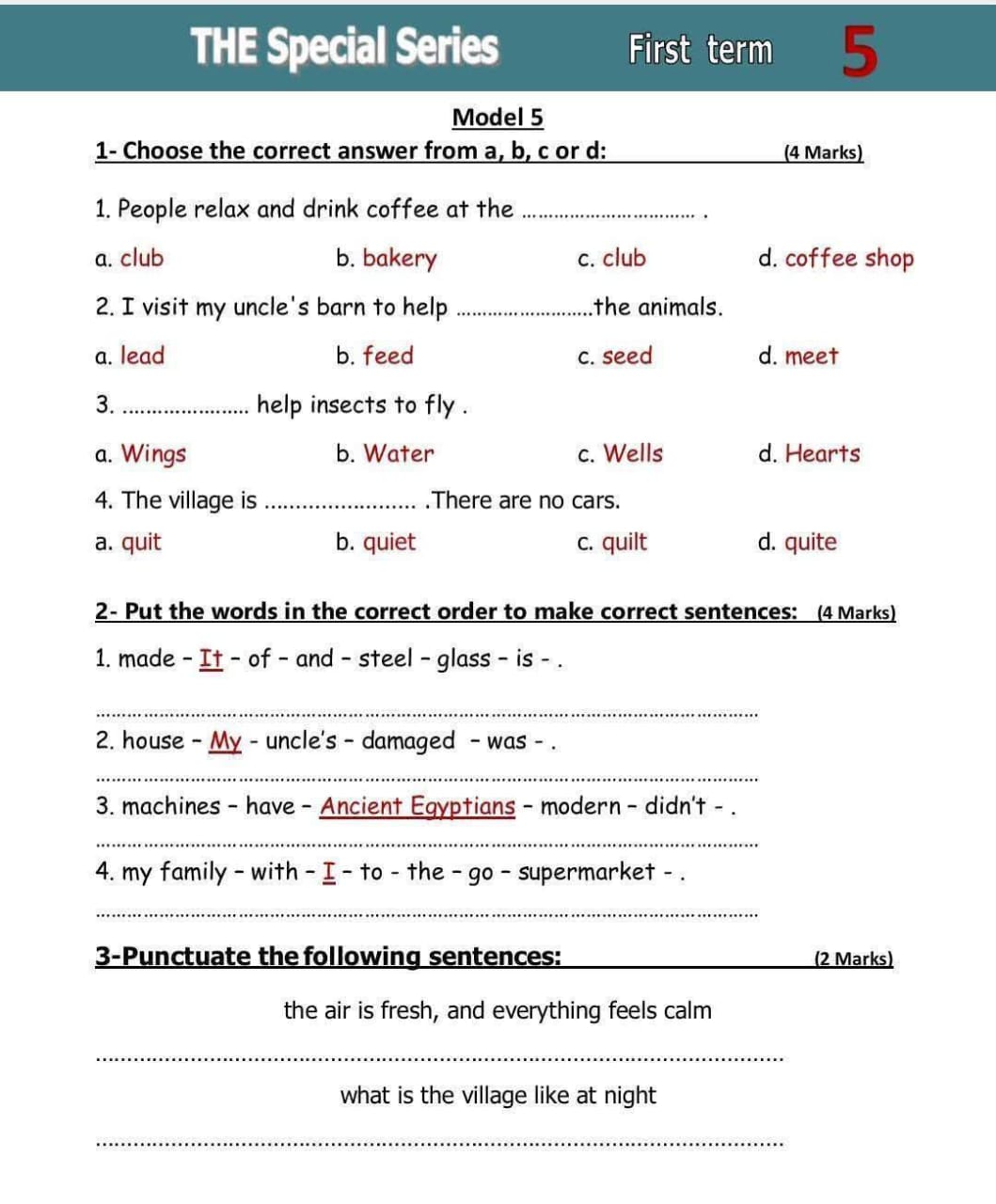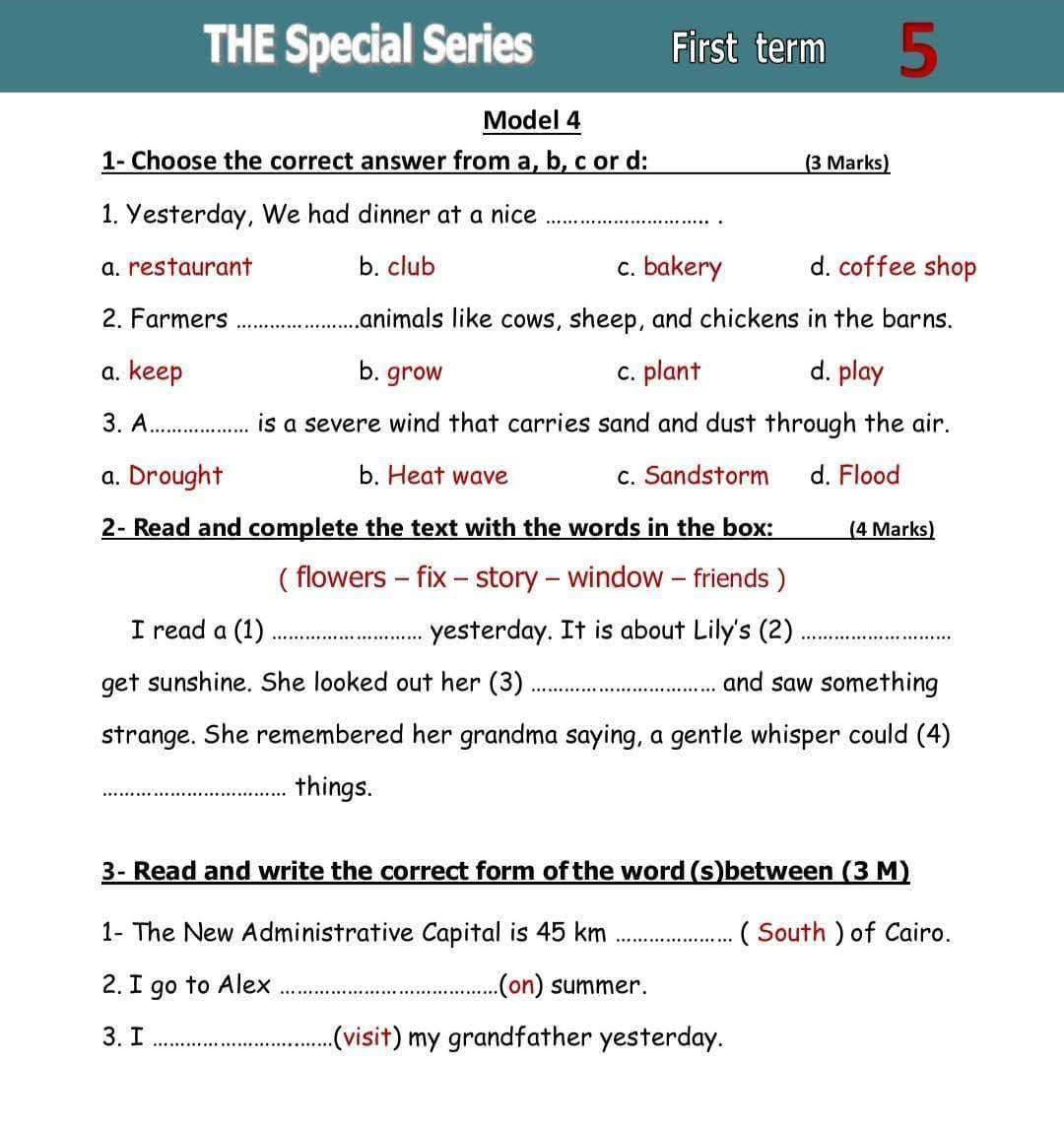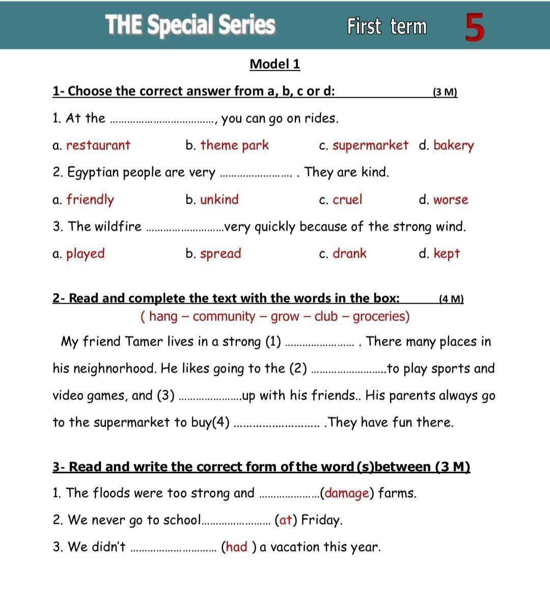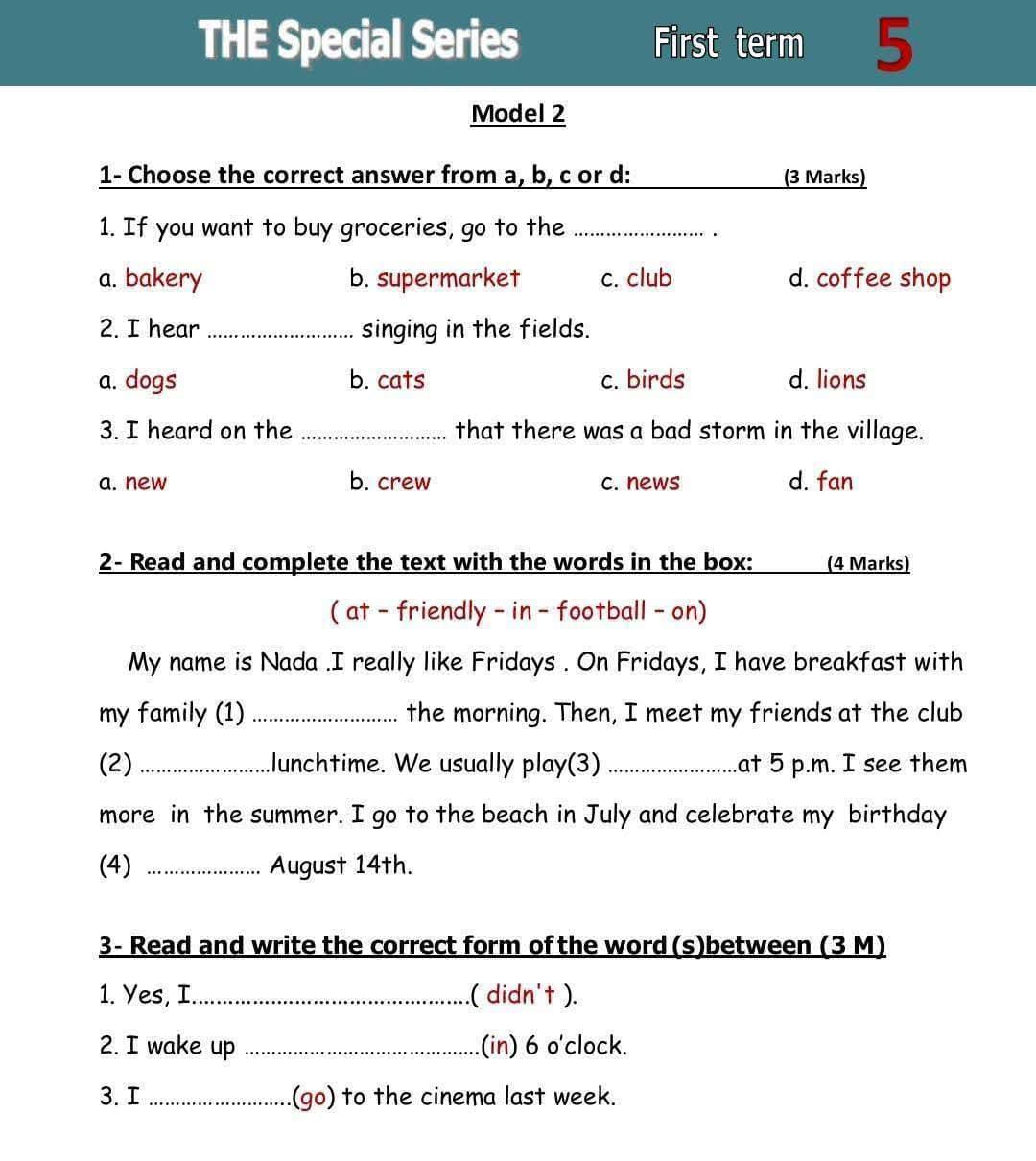 وفيما يلي نستعرض مجموعة من نماذج امتحانات شهر نوفمبر للصف الخامس الابتدائي في اللغة الإنجليزية للعام الدراسي 2025، والتي توضح شكل الأسئلة المتوقعة وأنماط التقييم المعتمدة، وتساعد الطلاب على التدريب العملي قبل الامتحان وتأتي كالتالي:
