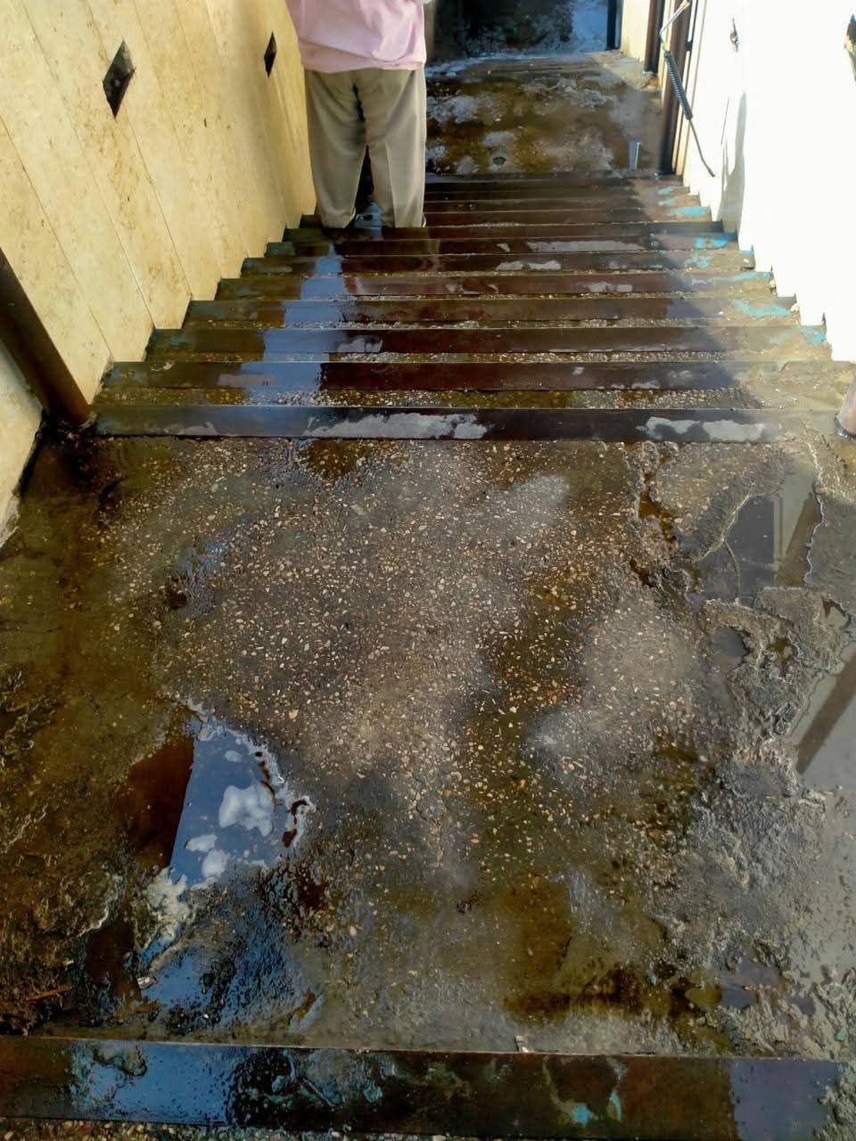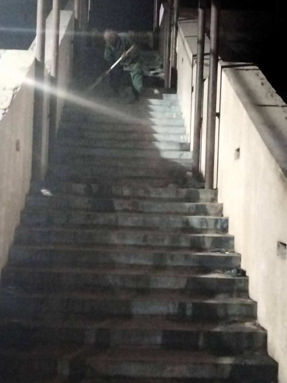 أثناء عملية تنظيف كوبري المشاة بالأقصر